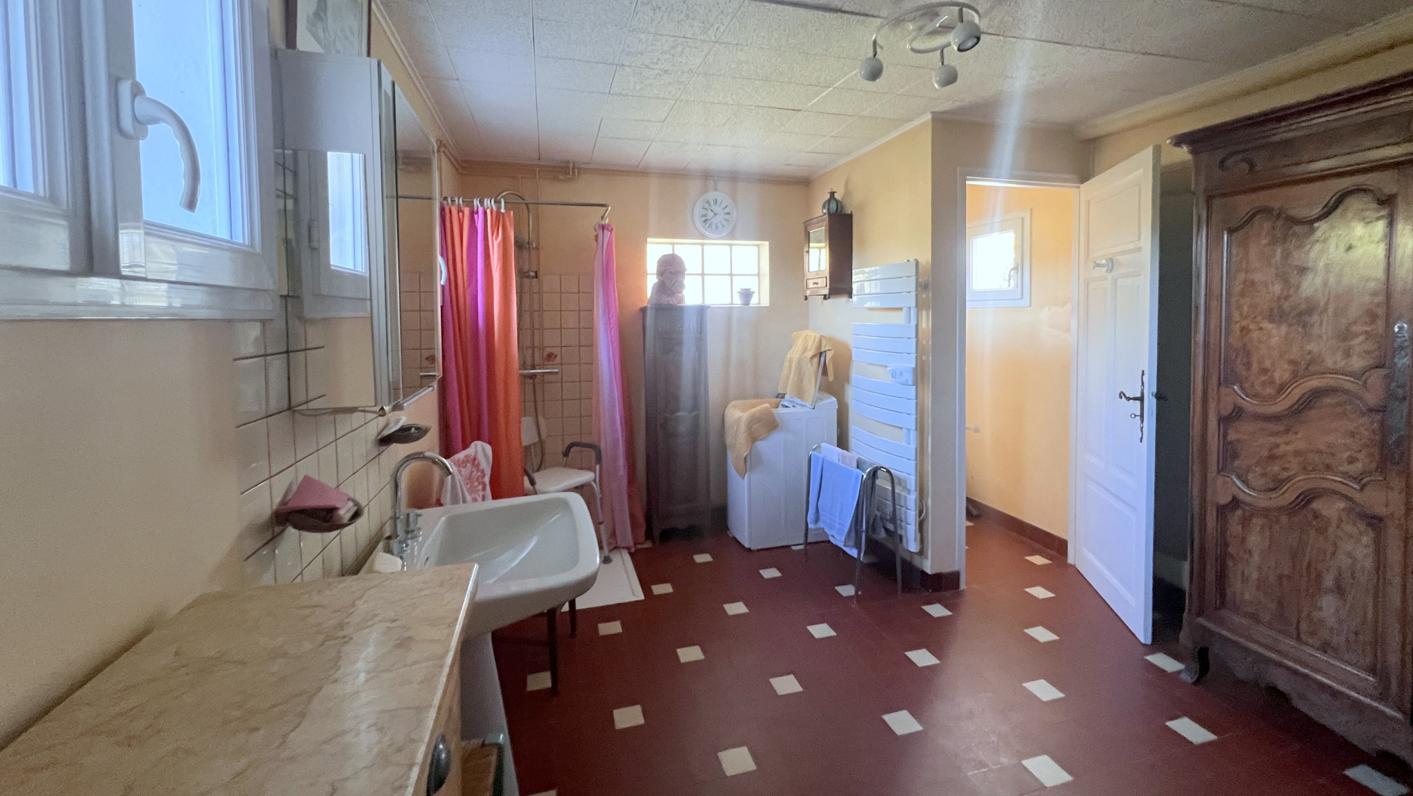 La maison principale comprend un séjour avec une belle cheminée ancienne, une cuisine séparée, une chambre, un bureau et une salle de douche avec wc. Deux chambres supplémentaires à l'étage par un escalier extèrieur.