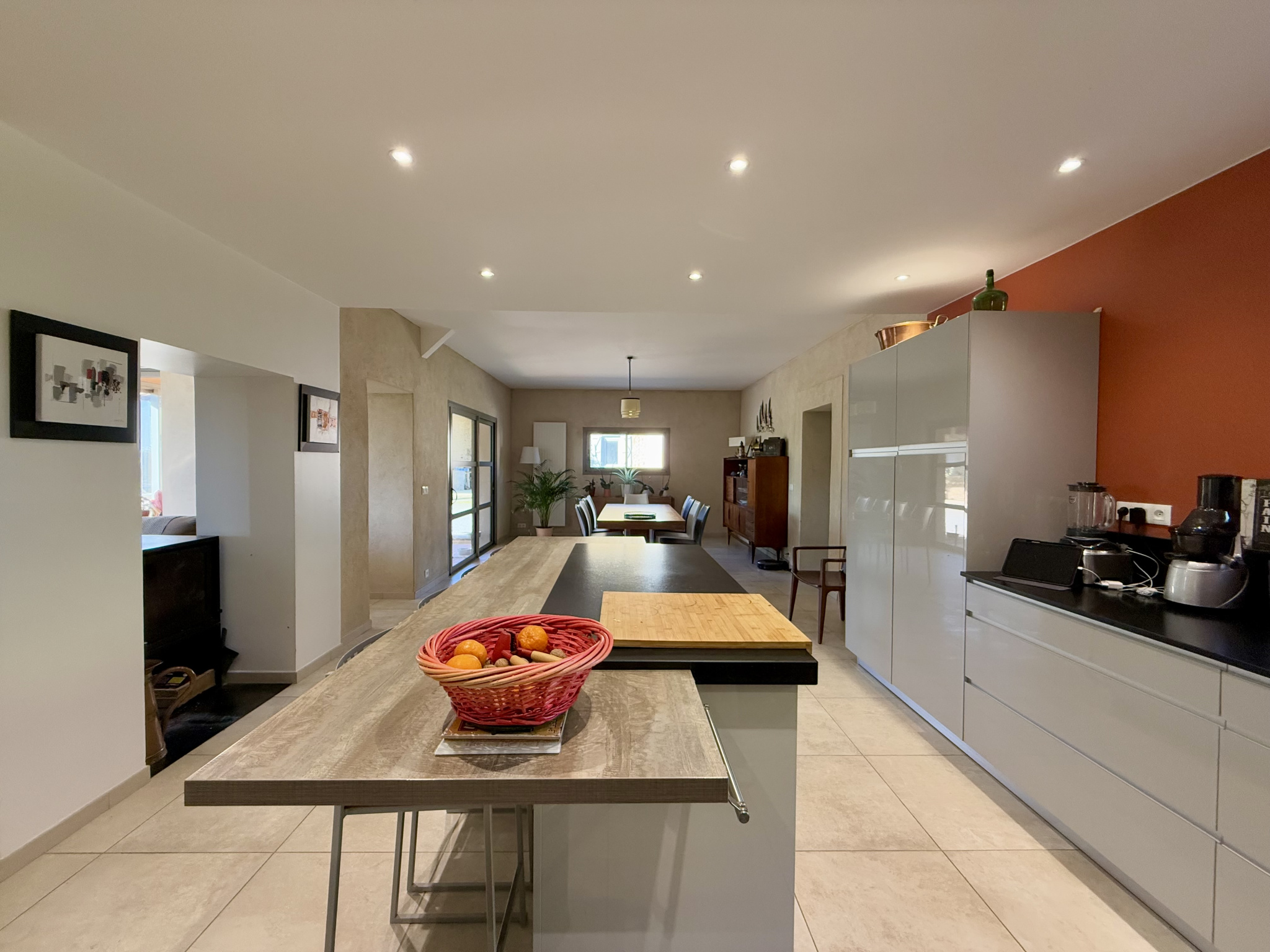 La cuisine haut de gamme, ouverte sur un séjour spacieux, invite aux repas en famille ou entre amis.