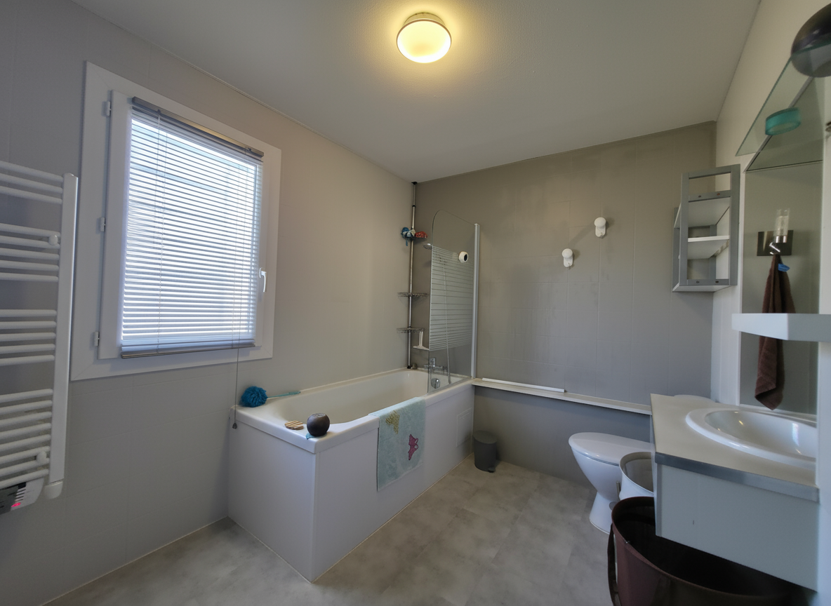 A l'étage, vous trouverez trois chambres disposant chacune d'un grand placard de rangement. Une lingerie pratique et une salle de bain familiale complètent l'étage.