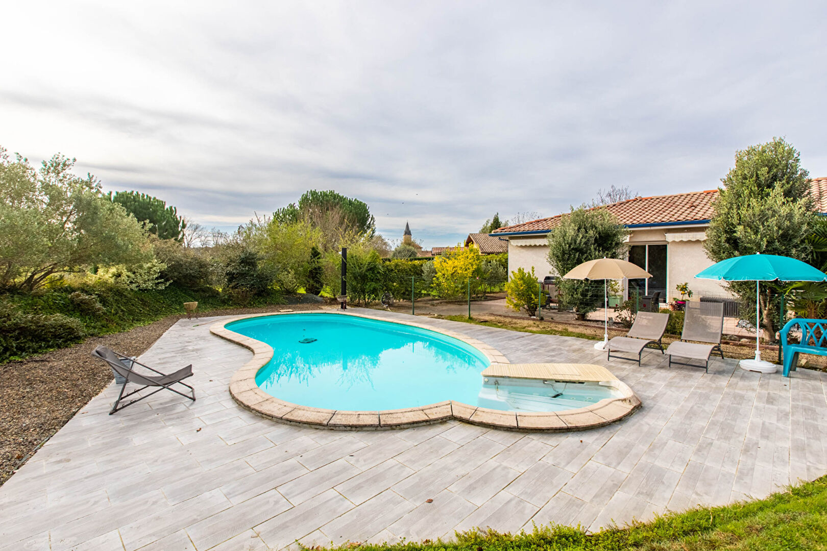 ? le tout sur un terrain arboré et clôturé de plus de 3000 m², idéal pour laisser les enfants jouer en toute liberté.
