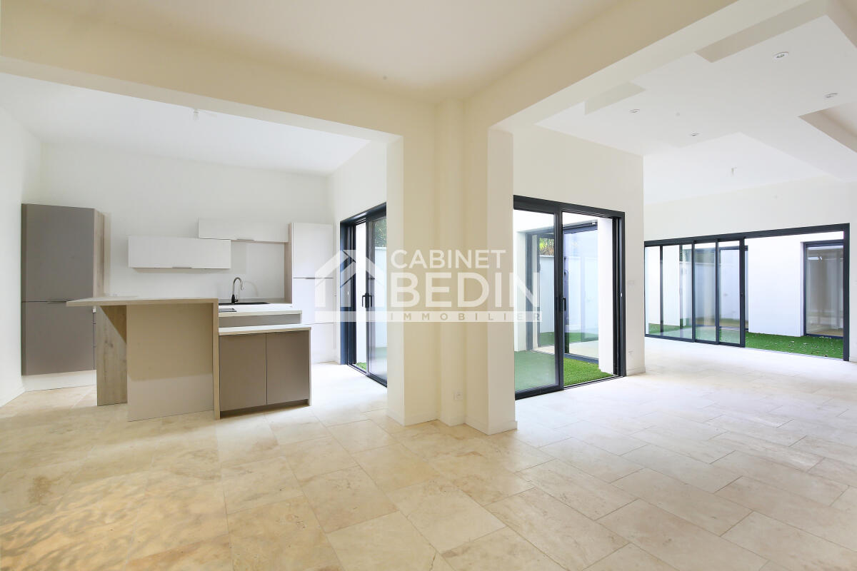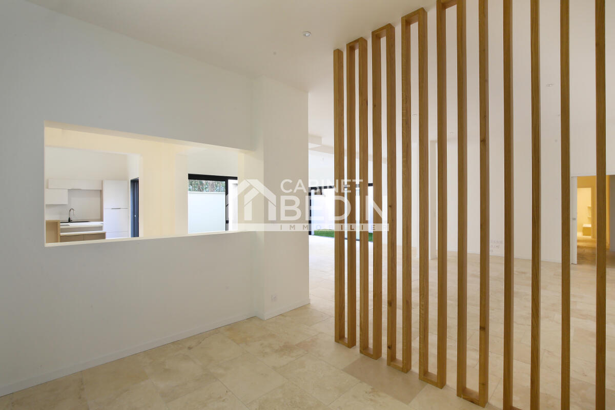 De grandes baies vitrées à galandage s?ouvrent sur de superbes patios sans vis-à-vis, créant une atmosphère apaisante et un dialogue permanent entre intérieur et extérieur.