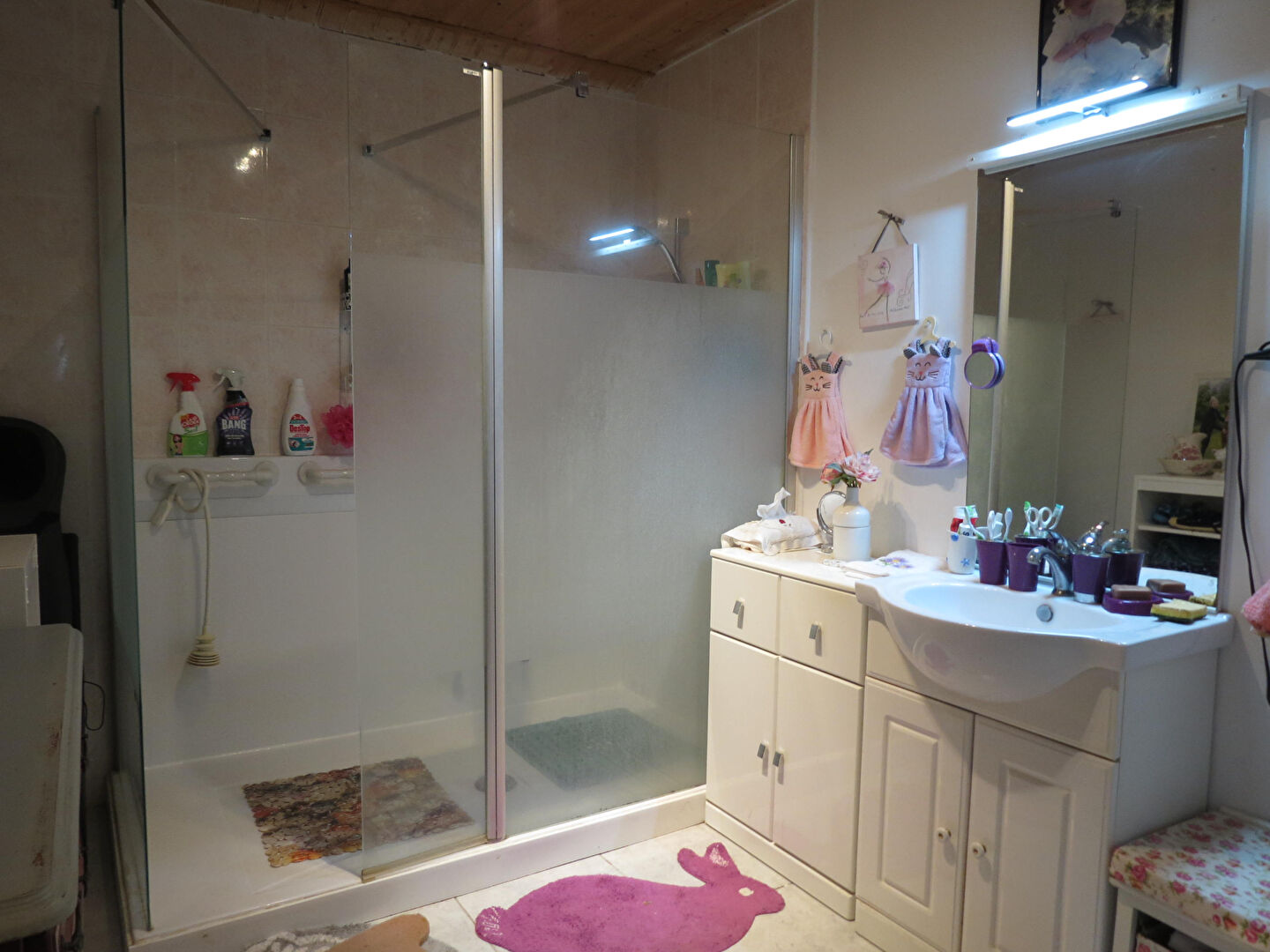 La maison offre une grande pièce de vie d'environ 60 m2 avec une cuisine ouverte et une véranda qui apporte luminosité et confort au quotidien. Le chauffage est assuré par une pompe à chaleur.