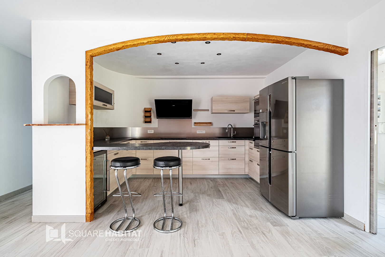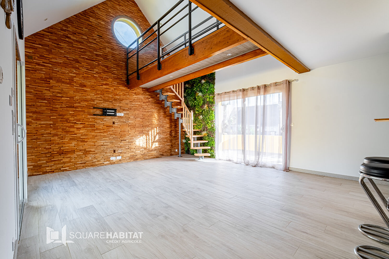 Une mezzanine accueillant un espace bureau, deux chambres supplémentaires et une salle de bain permettent de créer un coin nuit indépendant ou un espace dédié aux enfants/adolescents.