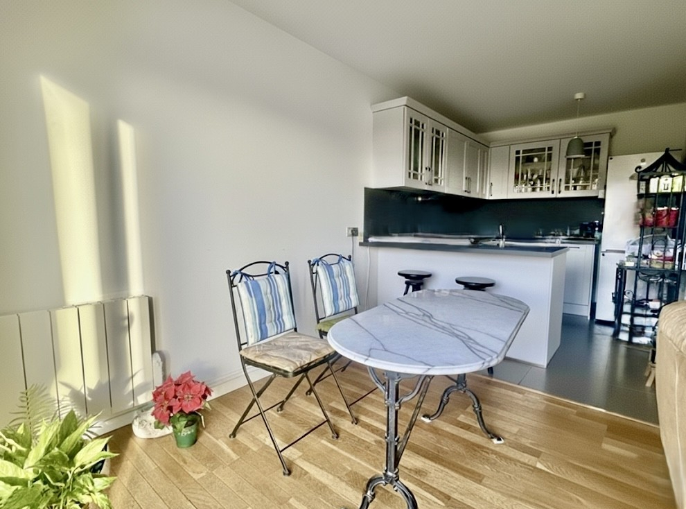 Il se compose d'une spacieuse entrée avec rangements, d'une belle pièce de vie lumineuse de 36m2 avec sa cuisine ouverte et entièrement équipée, le tout donnant sur un balcon exposé sud-ouest.