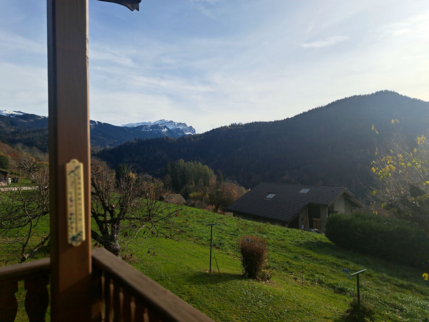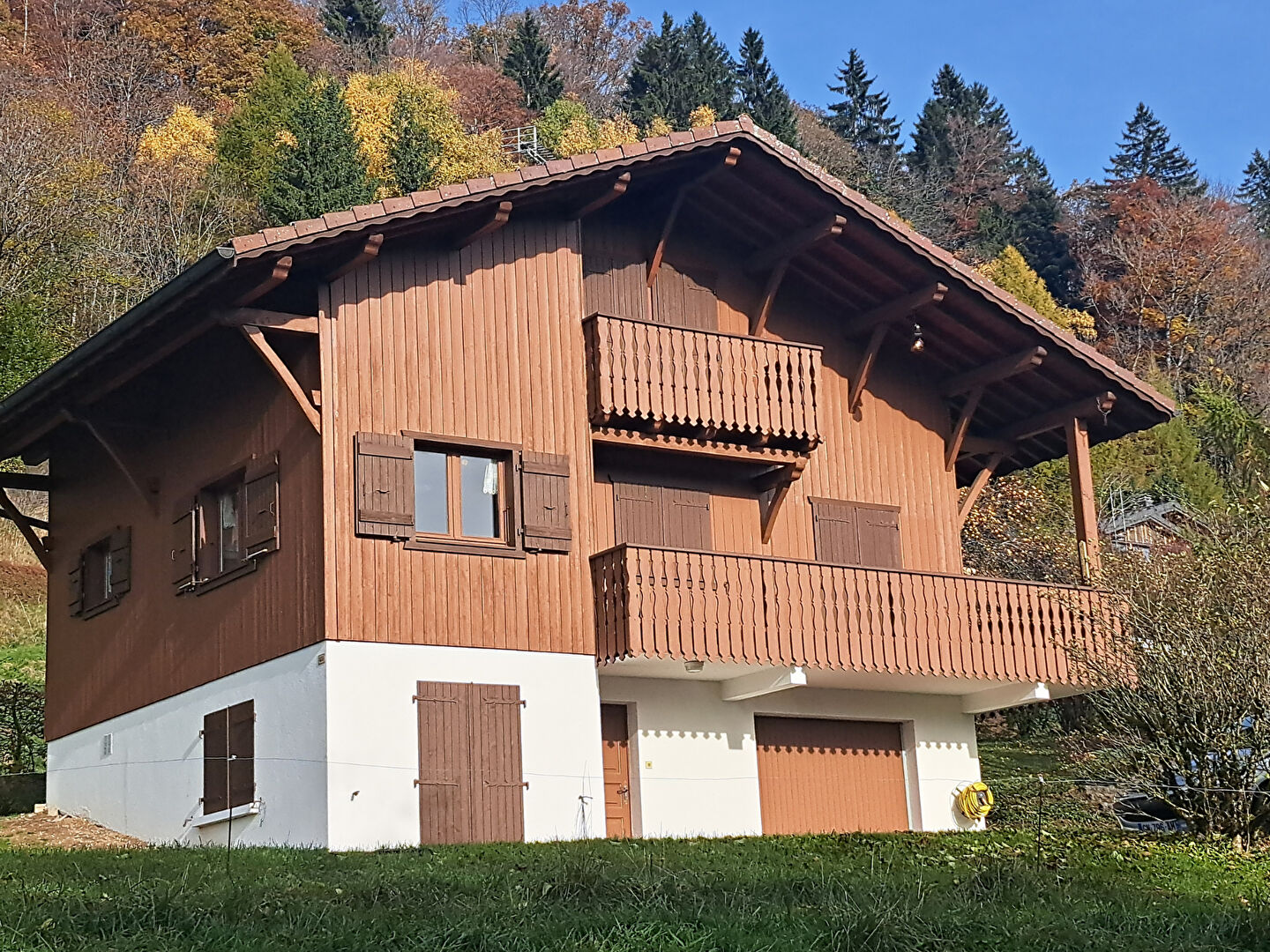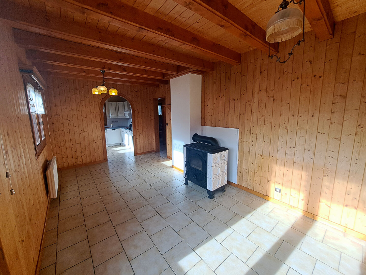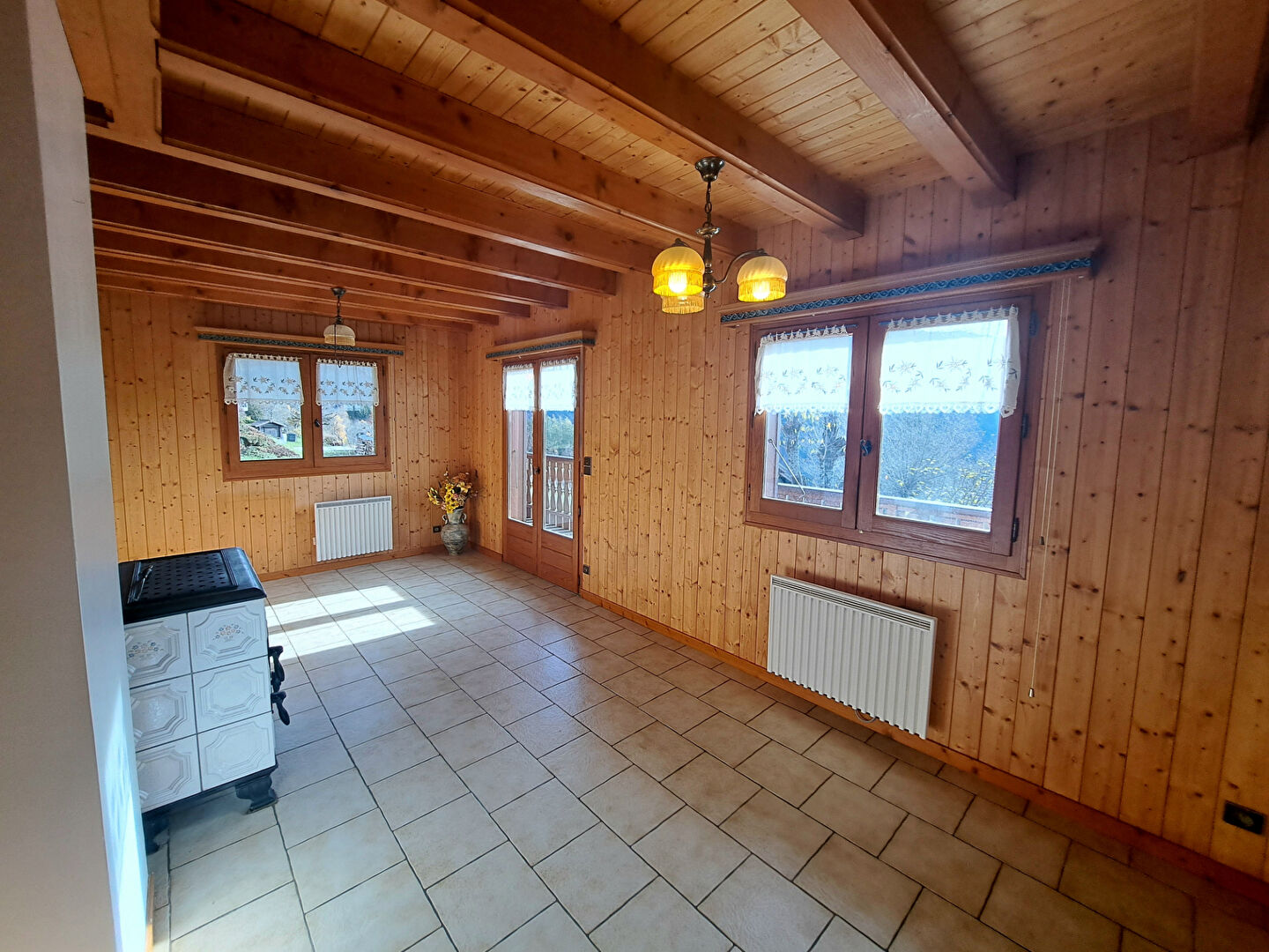 Avec vue dégagée sur les montagnes, ce chalet de 1993 est composé d'une entrée desservant garage, pièce à aménagée (possibilité chambre avec pièce d'eau) . A l'étage : cuisine aménagée, séjour avec poèle à bois et accès balcon, chambre, wc, salle de douche. le 2ème étage se compose d'une mezzanine de 2 chambres avec balcon, et une pièce d'eau avec wc et lavabo.