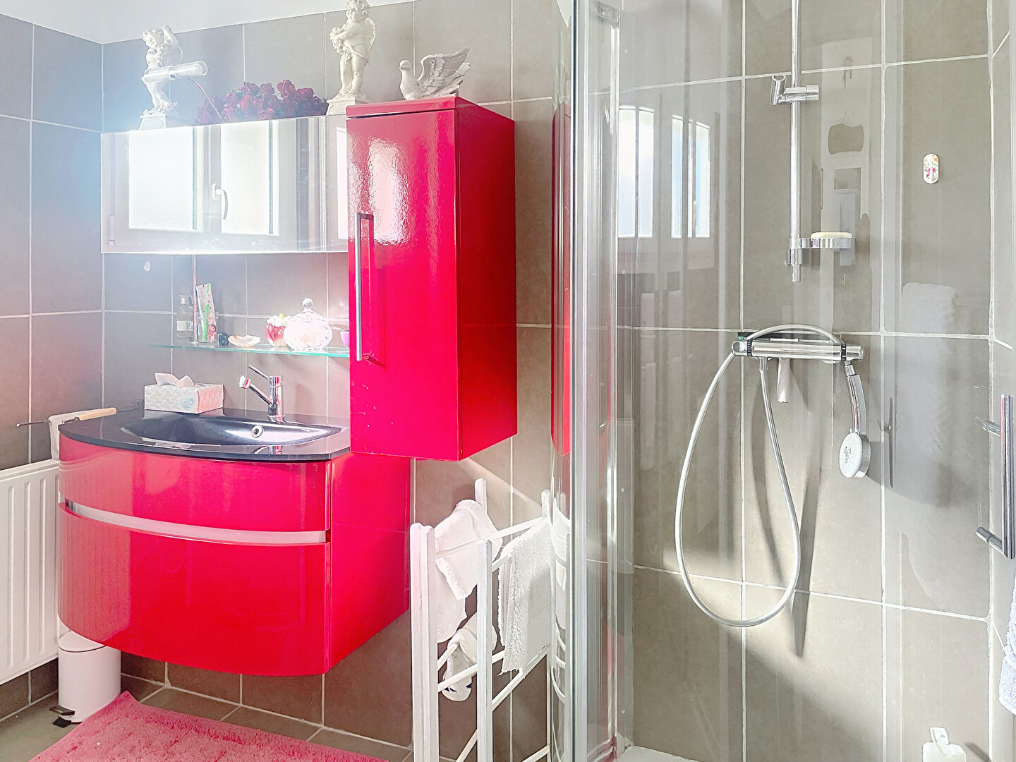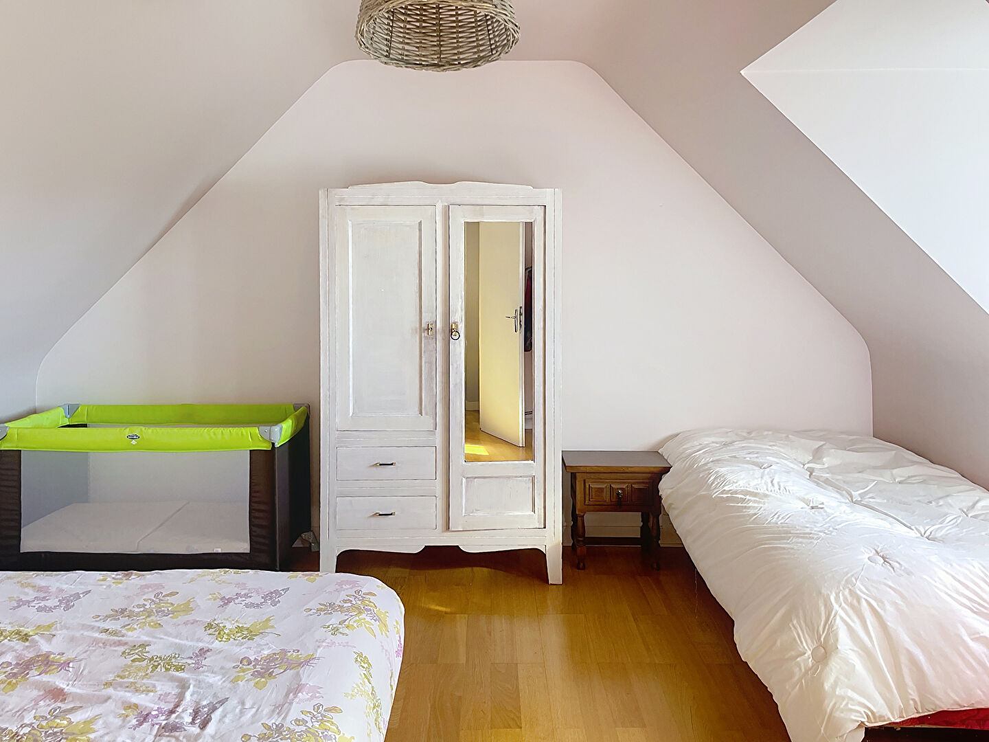 A l'étage, un couloir desservant 3 chambres dont une en enfilade et WC.