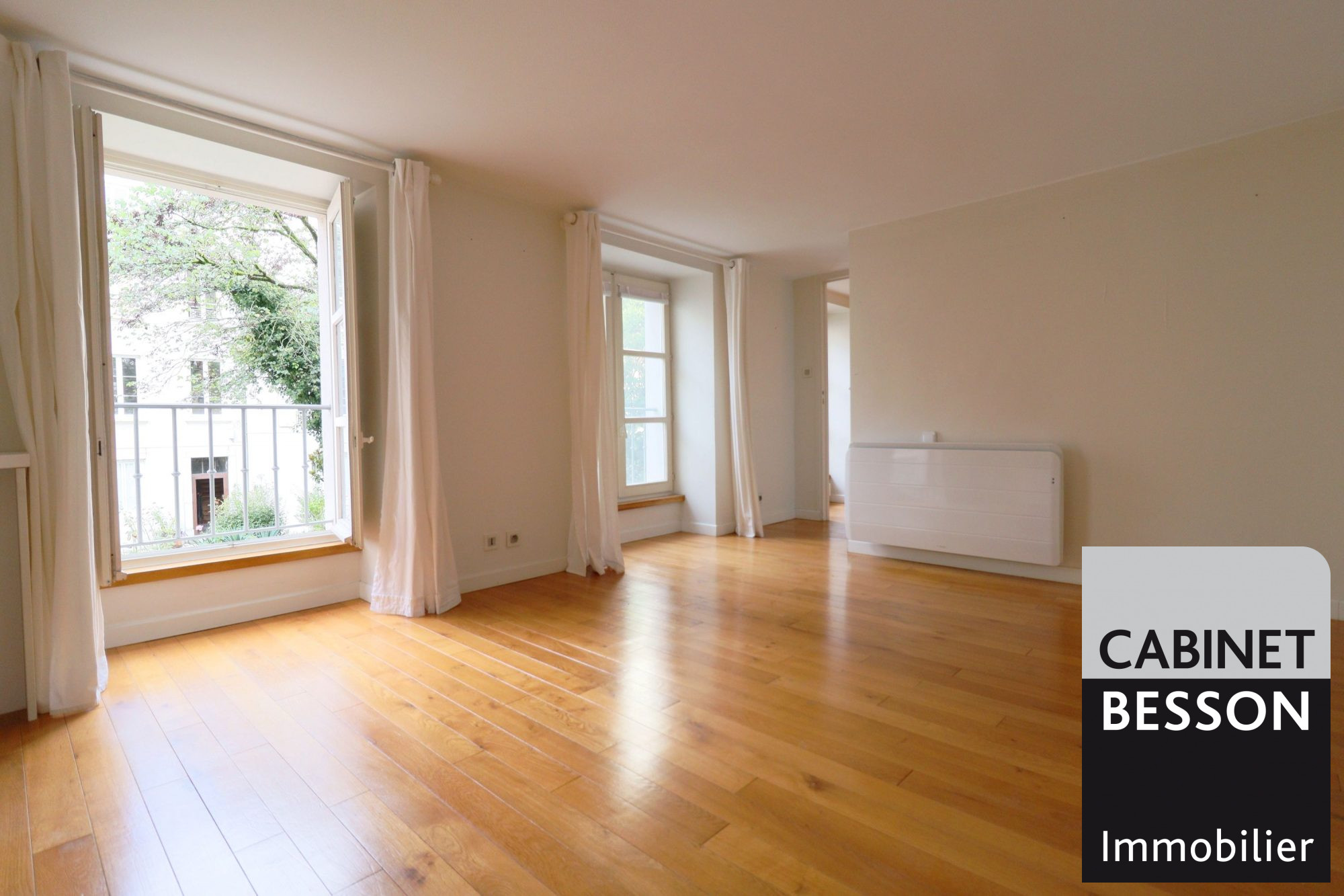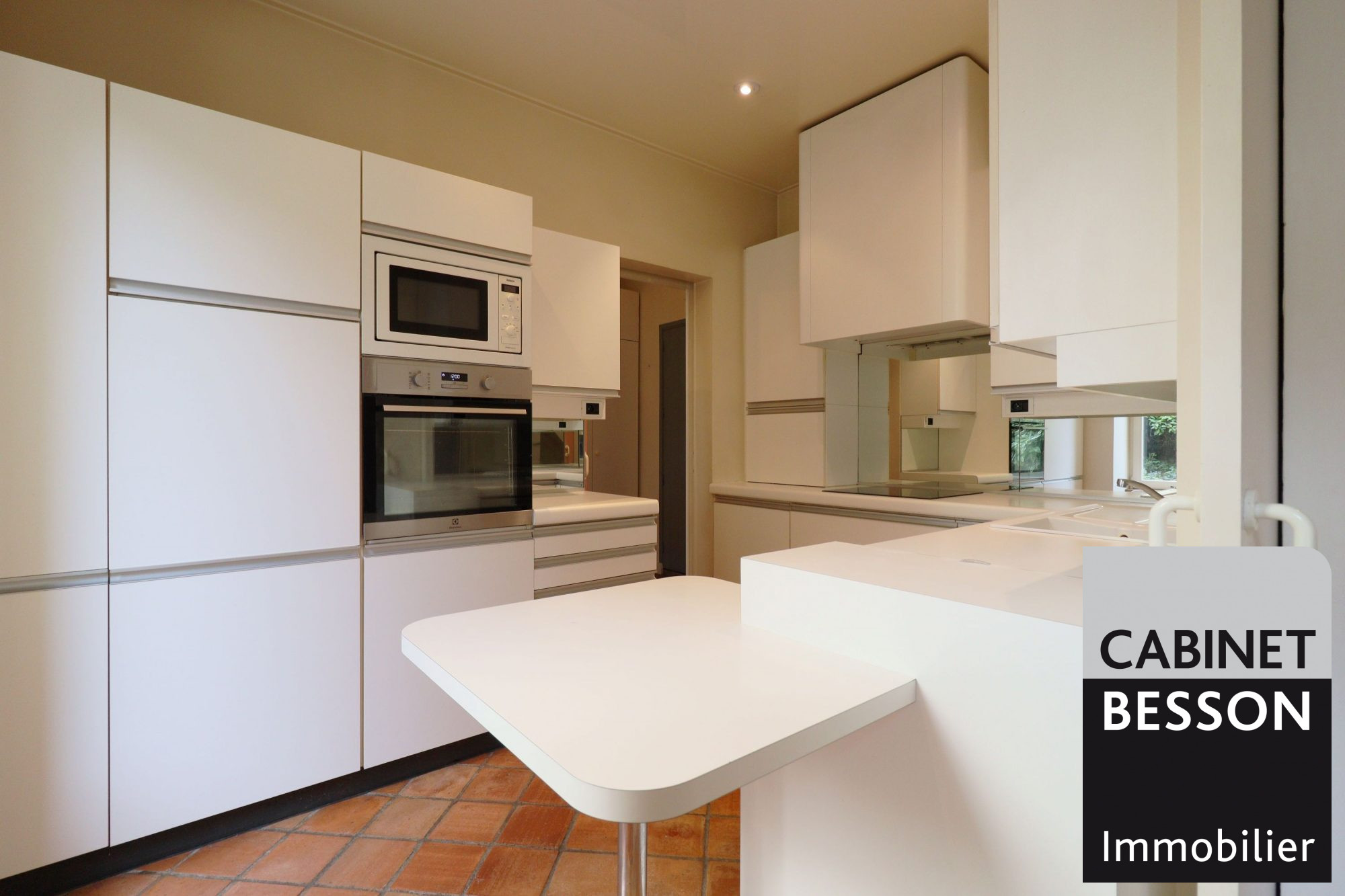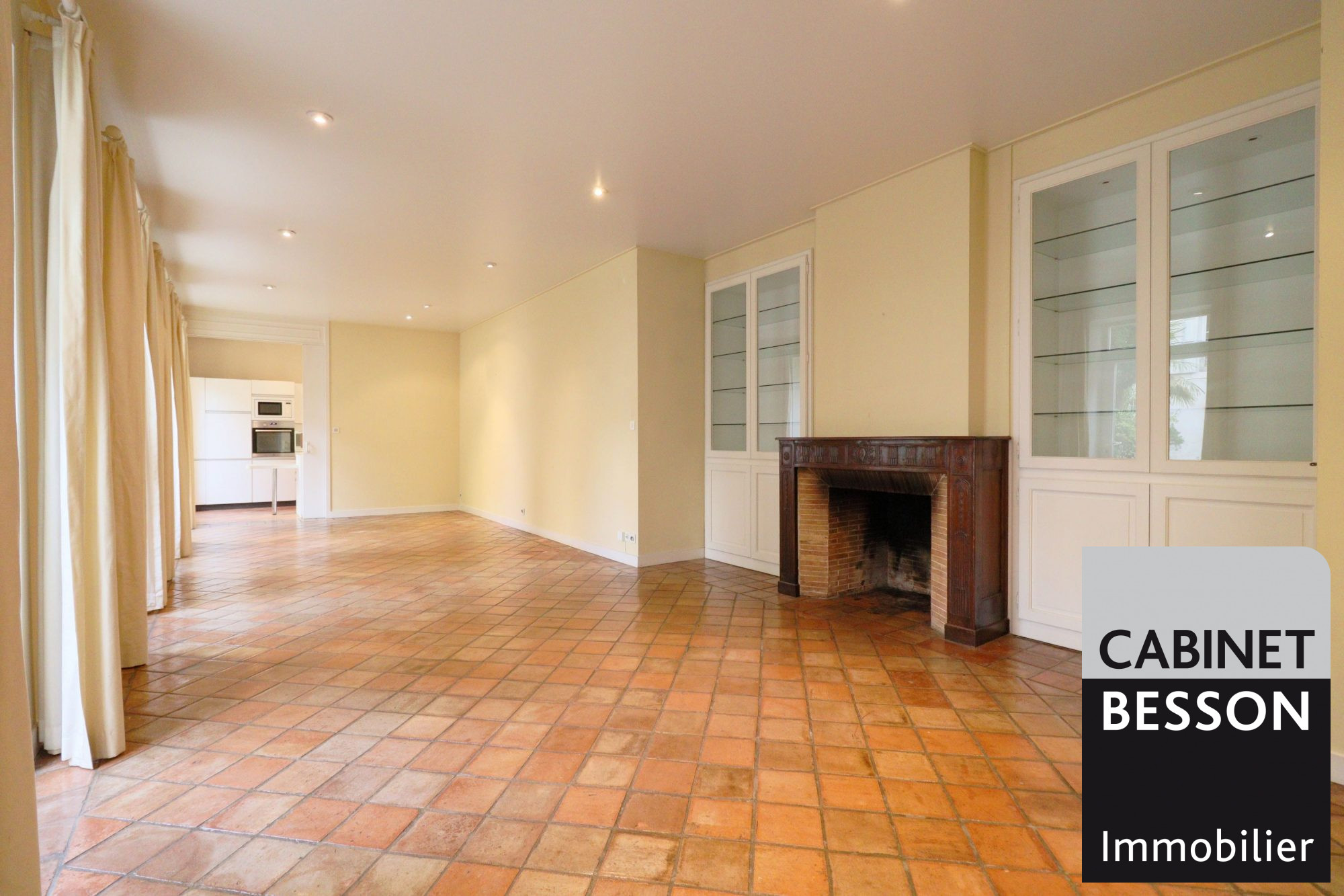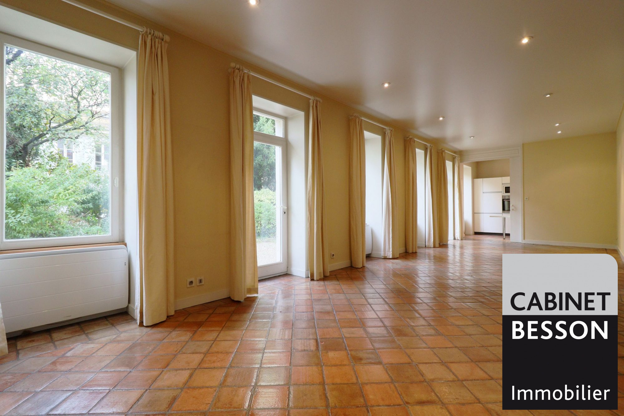 - Au rez-de-chaussée : entrée, séjour de 44m² donnant sur le parc intérieur arboré, cuisine équipée, un dégagement avec rangement, une entrée et un wc.