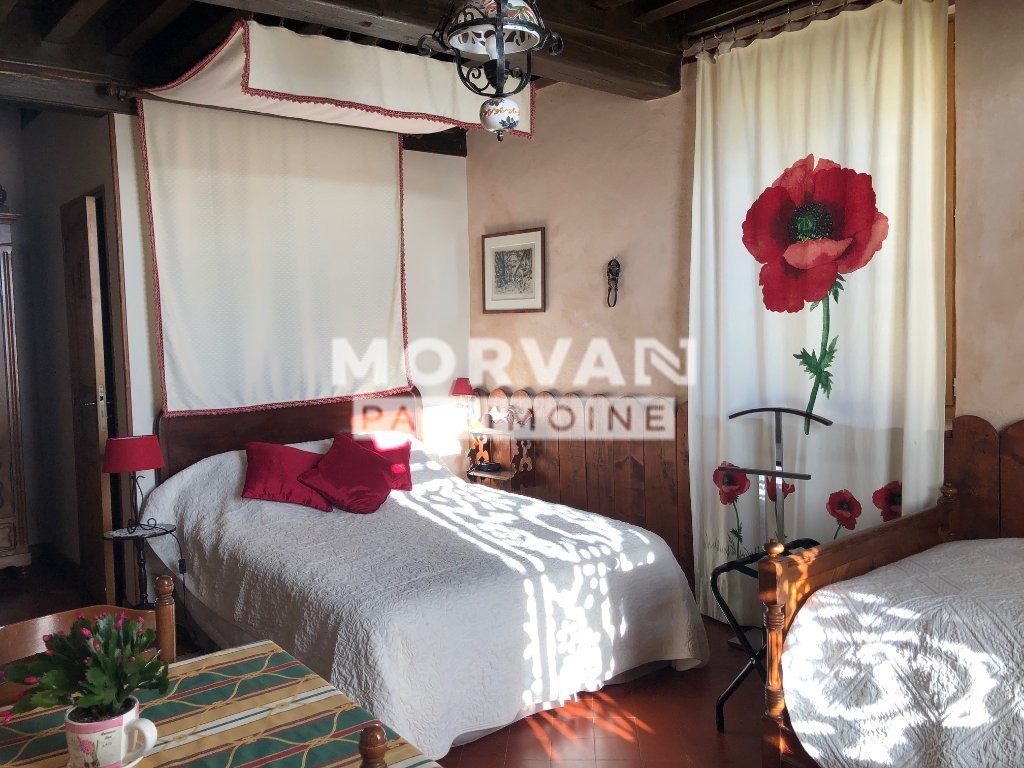 Le gîte attenant, idéal pour une activité locative, comprend une belle pièce à vivre, une cuisine équipée et trois chambres avec salle d'eau et WC, garantissant un confort optimal à vos hôtes.