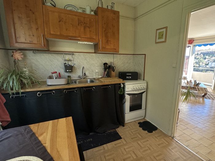 Emplacement idéal pour cet appartement F4, situé au 4ème étage d'un immeuble comprenant de nombreux atouts: centre-ville, collège, lycée accessibles à pieds, grand espace extérieur commun,...). L'appartement se compose d'une entrée indépendance, d'un séjour avec balcon bien exposé et une très jolie vue sur la ville, une cuisine séparée avec rangements, trois chambres, un wc, ainsi qu'une salle de bain.
