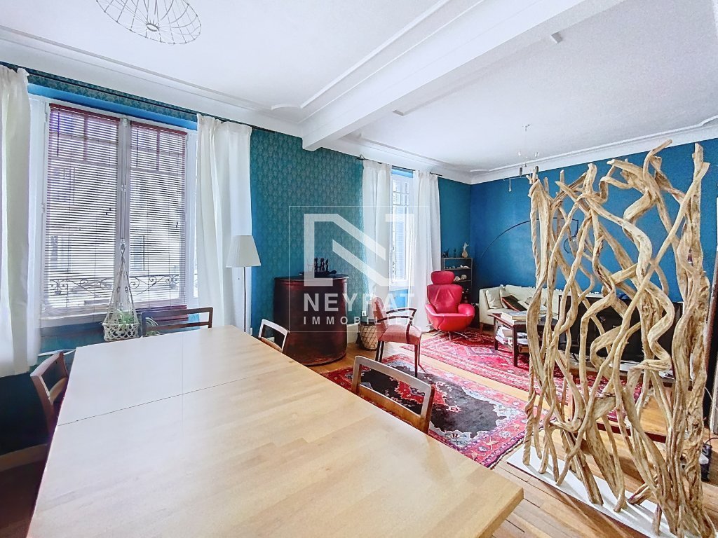 Au 1er étage d'un immeuble ancien de caractère, découvrez cet appartement traversant de 93,7 m², alliant authenticité, volumes généreux et confort moderne. Dès l'entrée, un vestibule mène à un spacieux salon séjour lumineux de plus de 32 m², sublimé par son parquet d'origine, sa belle hauteur sous plafond et son exposition Est.