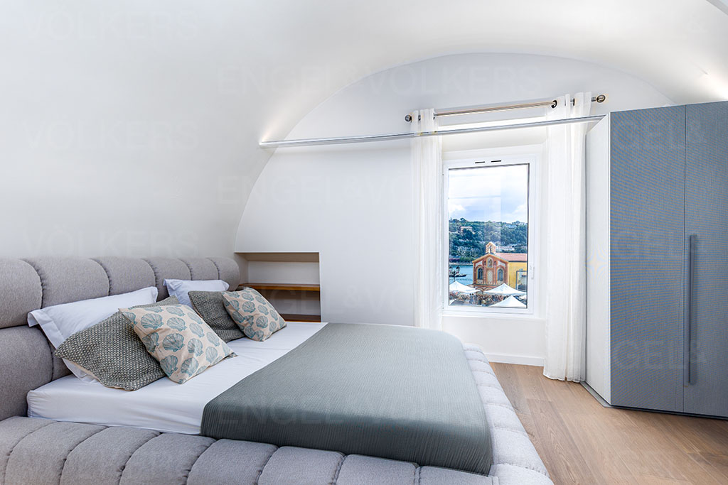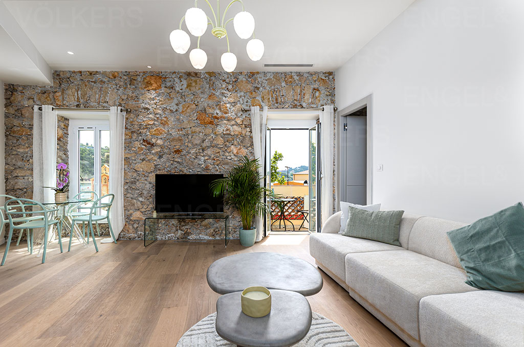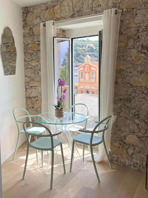 Sur la place principale du port de pêche de Villefranche sur Mer, cet appartement rénové avec gout s'appréhende comme une maison de village.