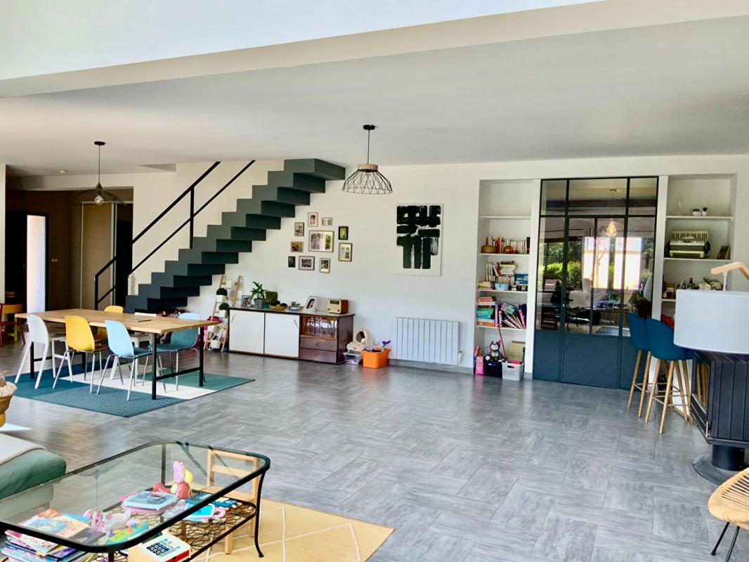 Un vrai atout pour les actifs cherchant le compromis idéal entre ville, nature et bien être familial. Dés l'entrée, vous serez conquis par sa pièce de vie de 75 m² réchauffée par son poêle à bois avec un superbe espace salon cosy, très lumineux grâce à son avec toit cathédrale et ses grandes baies vitrées offrant une lumière traversante et une vue apaisante sur le jardin. Cet espace s'ouvre sur une terrasse avec pergola, idéale pour profiter des beaux jours en famille. Une cuisine toute équipée ouverte sur la salle à manger.