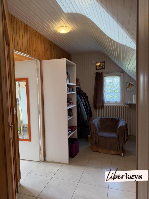 À l'étage, un palier desservant deux chambres, chacune disposant de deux greniers attenants et une salle de bain.
