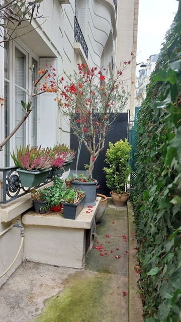 Que ce soit côté cour ou côté rue on peut profiter au calme de la verdure et du chant des oiseaux.
