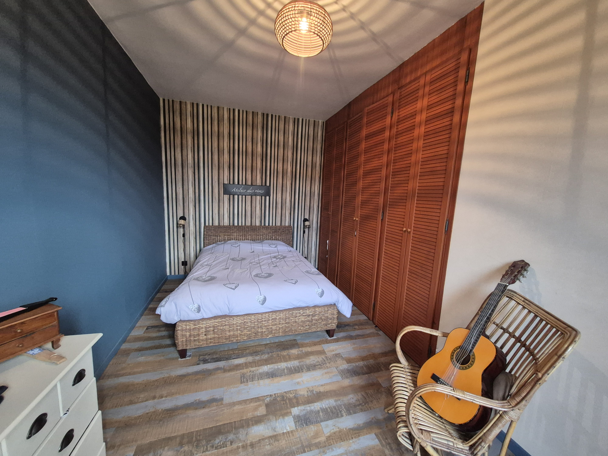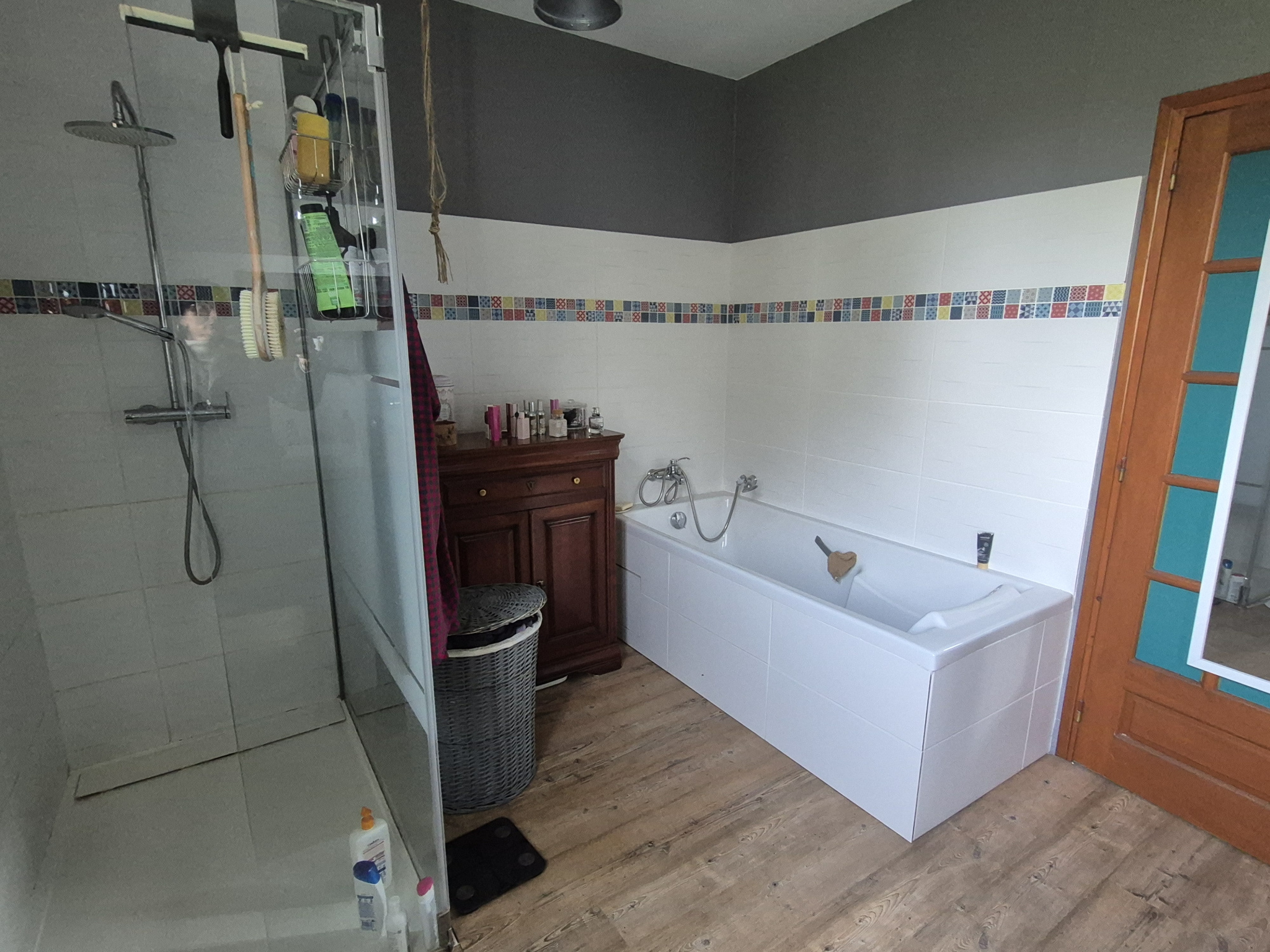 une salle de bains avec douche,wc, deux chambres de plain pied