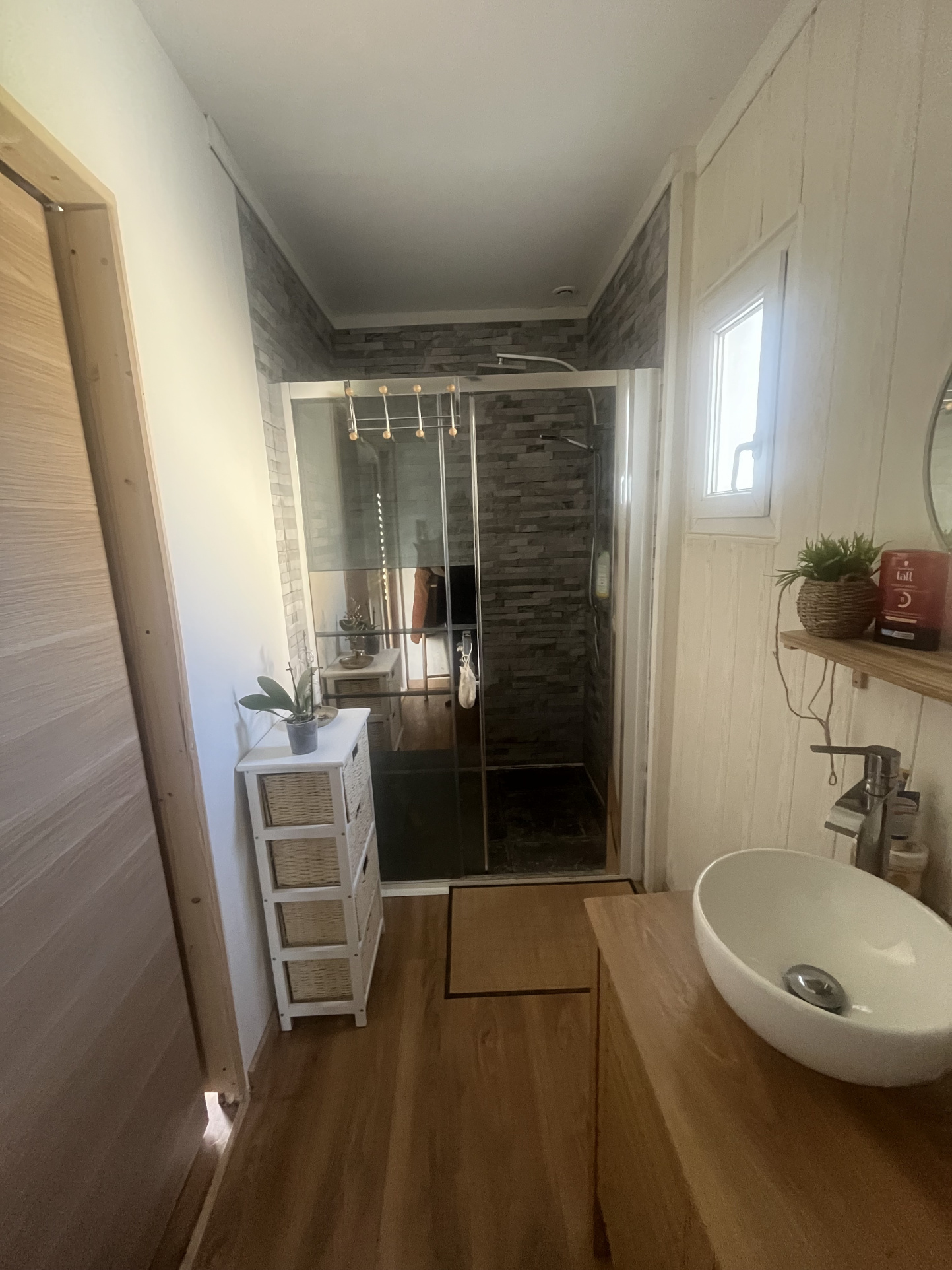 À l'étage, vous trouverez trois chambres confortables ainsi qu'une salle de douche moderne.