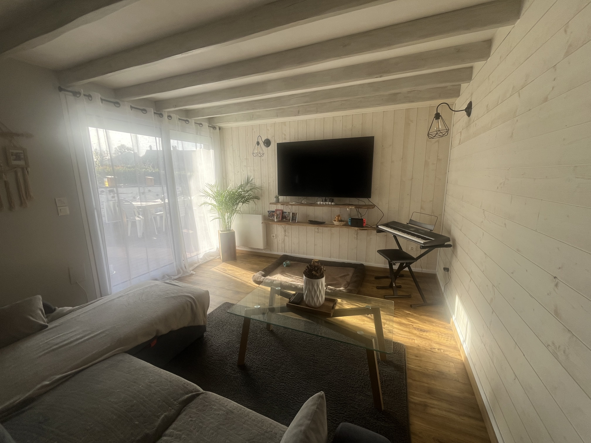 Au rez-de-chaussée, vous profiterez d'une spacieuse pièce de vie baignée de lumière, agrémentée d'un poêle hybride bois et pellets installé en 2025, idéal pour des soirées conviviales et une ambiance chaleureuse. La cuisine ouverte, aménagée et entièrement équipée, séduit par sa fonctionnalité. Une extension vient compléter l'ensemble, accueillant un grand salon lumineux avec accès direct sur l'extérieur.