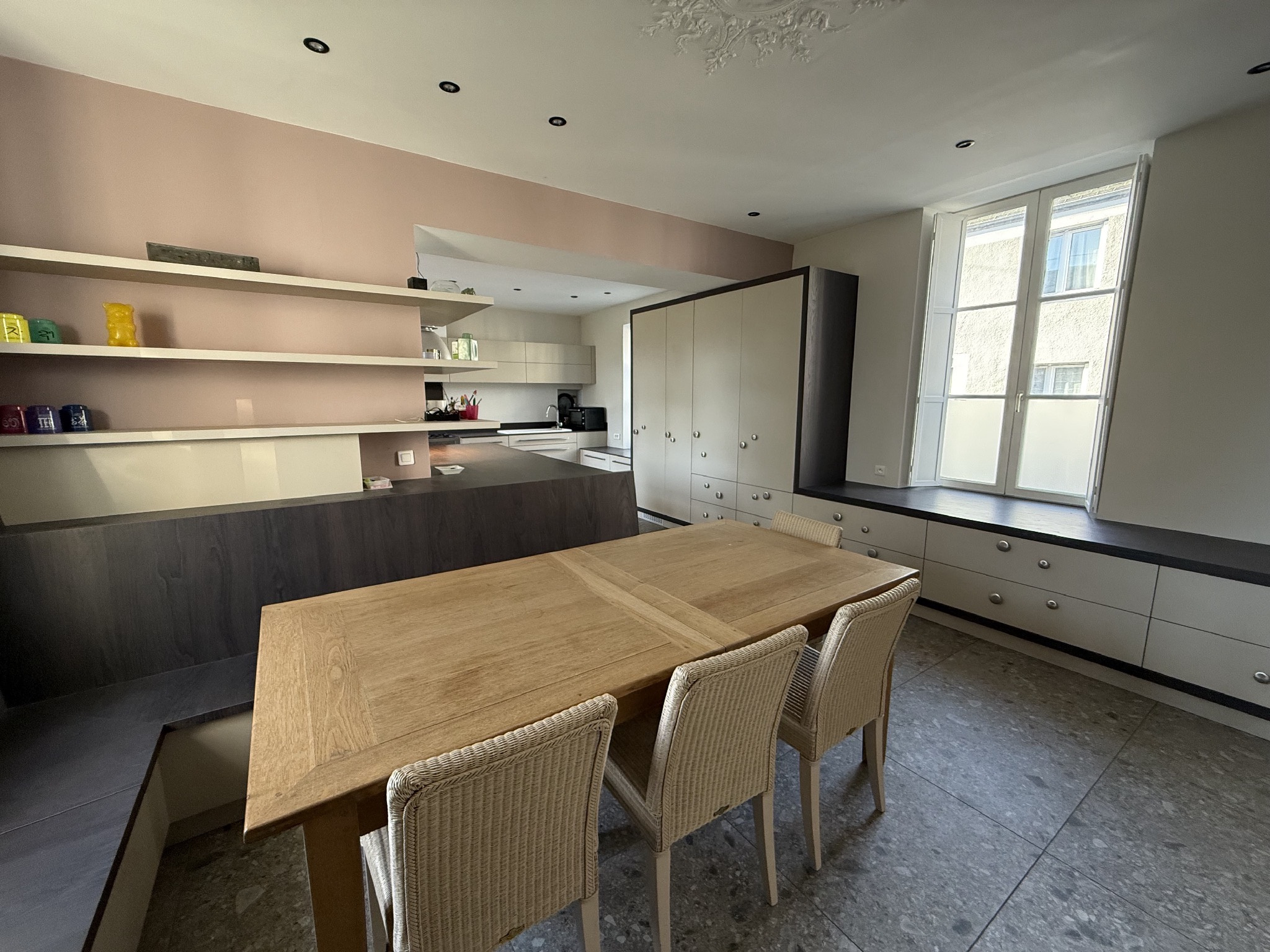 En plein coeur du bourg de Chécy, vaste maison de maitre de la fin du XIXe entièrement rénovée. Dès l'entrée, vous êtes accueilli par un escalier en chêne d'époque. Un espace cuisine-salle à manger de plus de 40 m2 a été aménagé avec beaucoup de goût. De la cuisine, vous accédez à une cave voutée de plus de 40 m2. Un salon et un séjour avec poêle à bois viennent compléter la réception de plain-pied. Toutes les pièces du rez-de-chaussée donnent accès à la terrasse par des portes ou des baies vitrées en fer forgé. Le premier étage est composé de trois chambres, une salle d'eau et un dressing. Le deuxième étage, quant à lui, dispose de deux chambres supplémentaires et d'un bureau. Une chambre avec son accès indépendant a été créée au-dessus du garage. Une annexe indépendante pouvant servir d'atelier, de chambre d'amis ou de bureau donnant sur le jardin a été tout récemment aménagée. Atelier, carport, terrasse et piscine agrémentent le terrain de plus de 1000 m2.