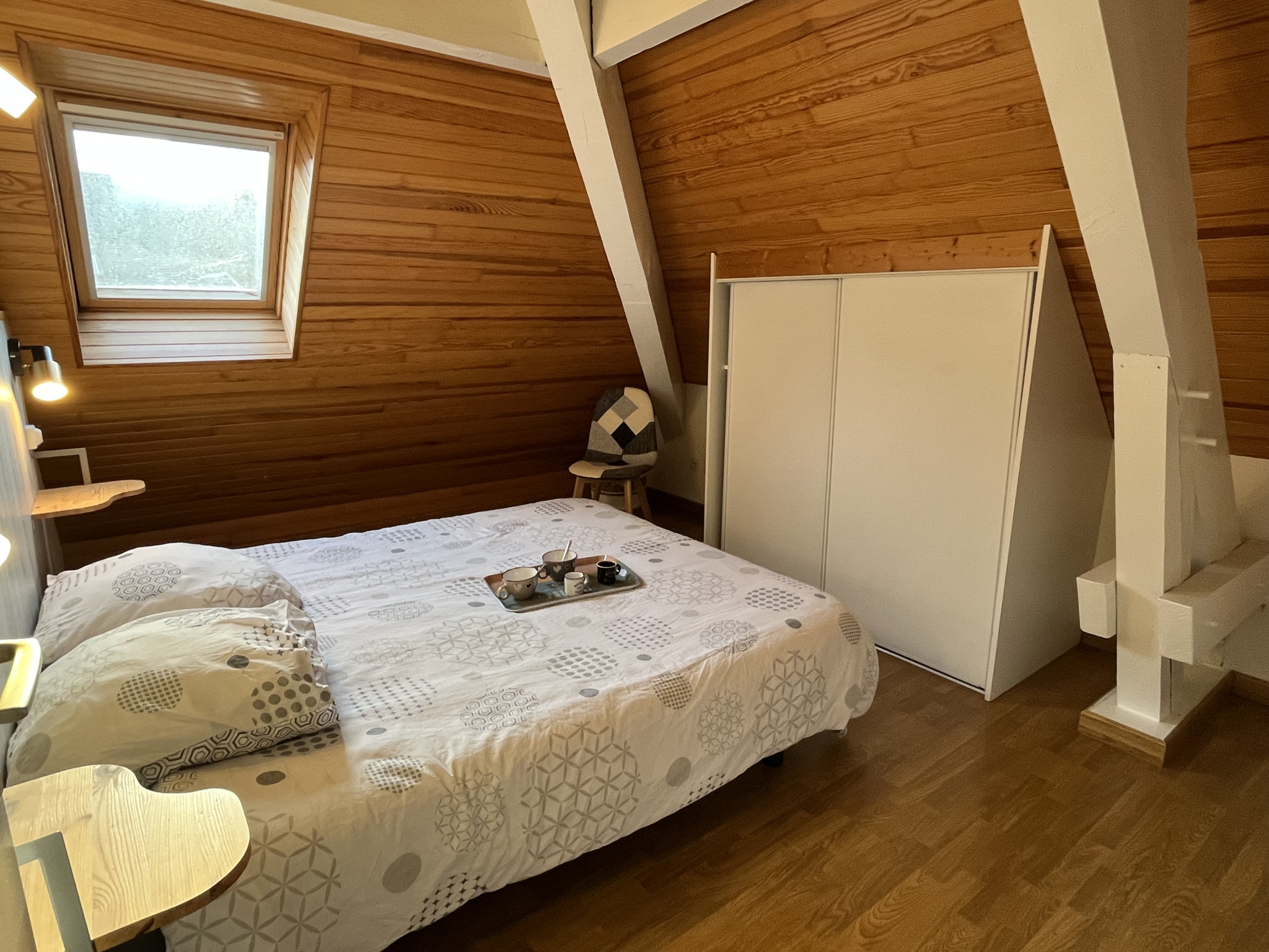 À l'étage, trois chambres lumineuses invitent au repos après une journée au grand air, accompagnées d'une salle d'eau et d'une salle de bain.