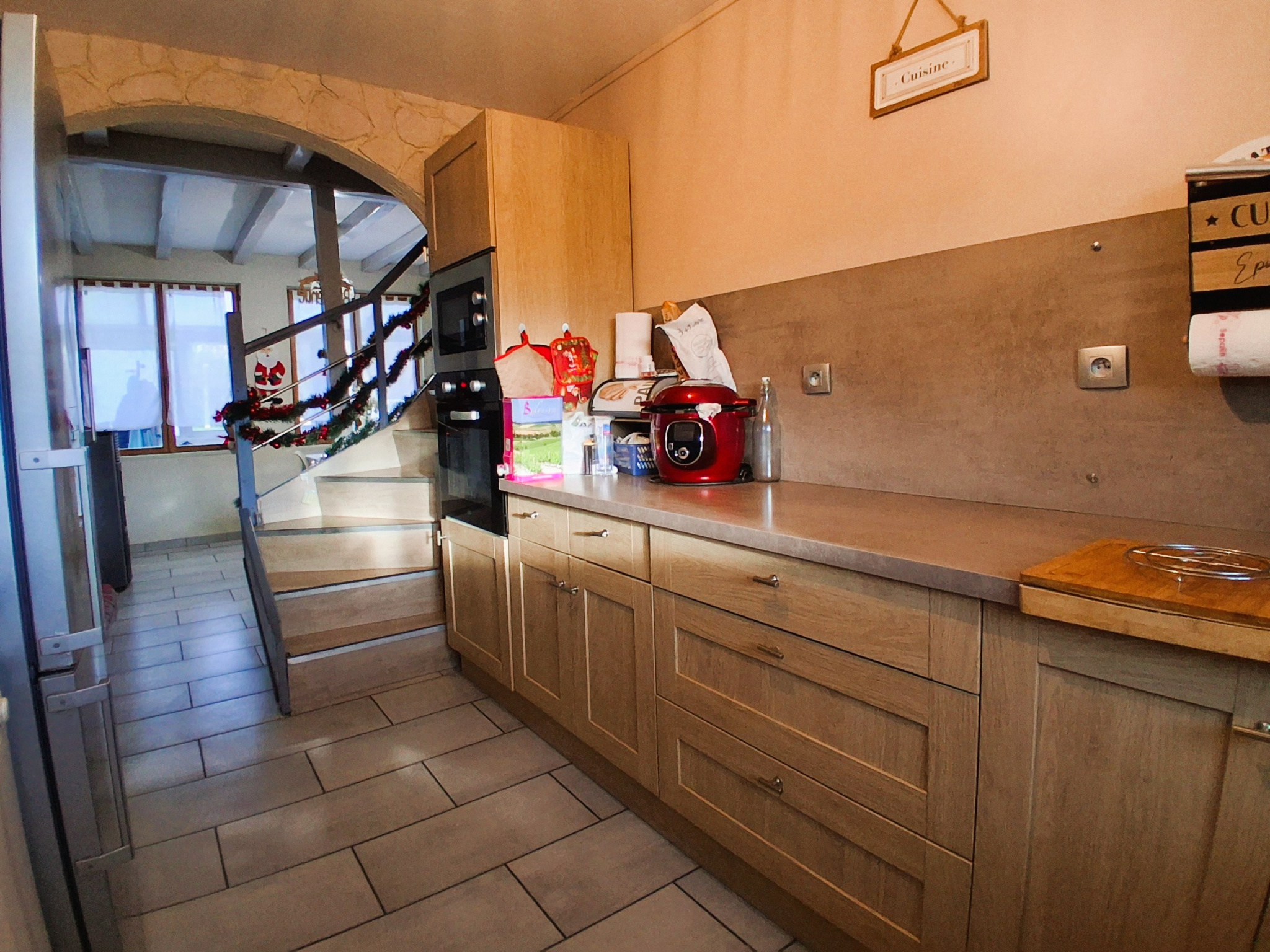 - En rez-de-chaussée surélevé : véranda, cuisine aménagée/équipée ouverte installée en 2022, séjour avec poêle à granule, chambre, salle d'eau avec douche à l'italienne ,WC.