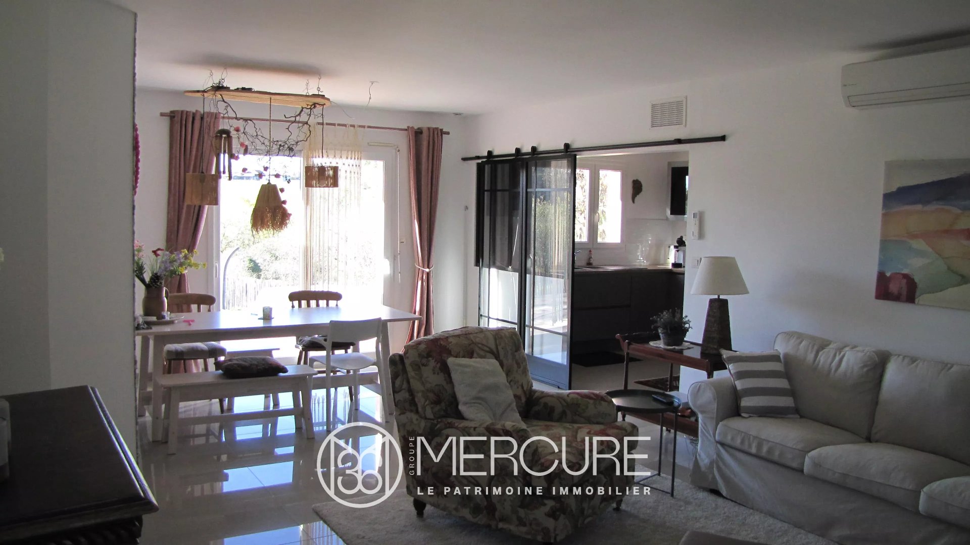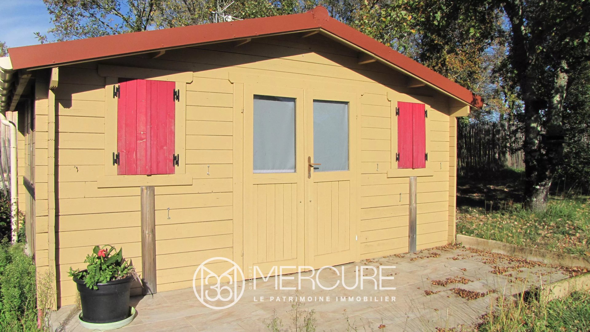 Double vitrage, radiateurs électriques, climatiseur, volets, jardin clos et arboré avec carport pour 2 voitures, abri de jardin, cabanon en bois. Foncier de 1 100 €.