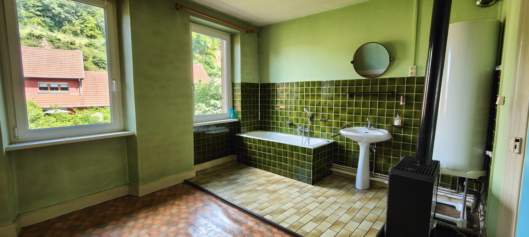 Des travaux de rénovation sont à prévoir, essentiellement : mise en conformité électrique, isolation des murs et du toit, installation d'un système de chauffage (le chauffage actuel du logement fonctionne par un poêle à mazout, une attente de gaz de ville est en place). Les doubles vitrages en pvc sont installés depuis une dizaine d'années, la charpente est en bon état. La toiture est à reprendre.