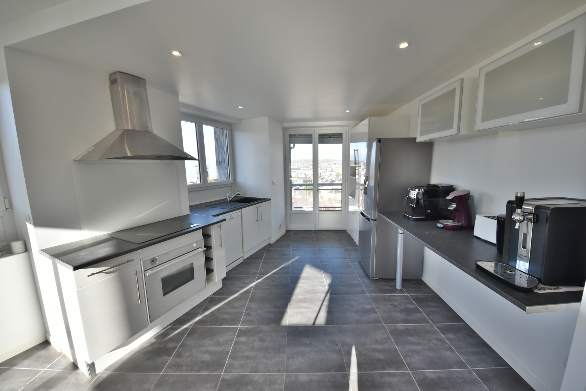 - D'un grand salon séjour lumineux avec cuisine ouverte, de deux chambres, d'une salle de bains, d'un WC, d'une buanderie et d'une grande terrasse.