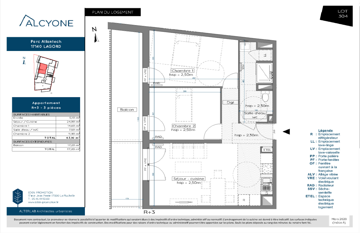 Achat Appartement 3 pièces 63m² LAGORD 17140