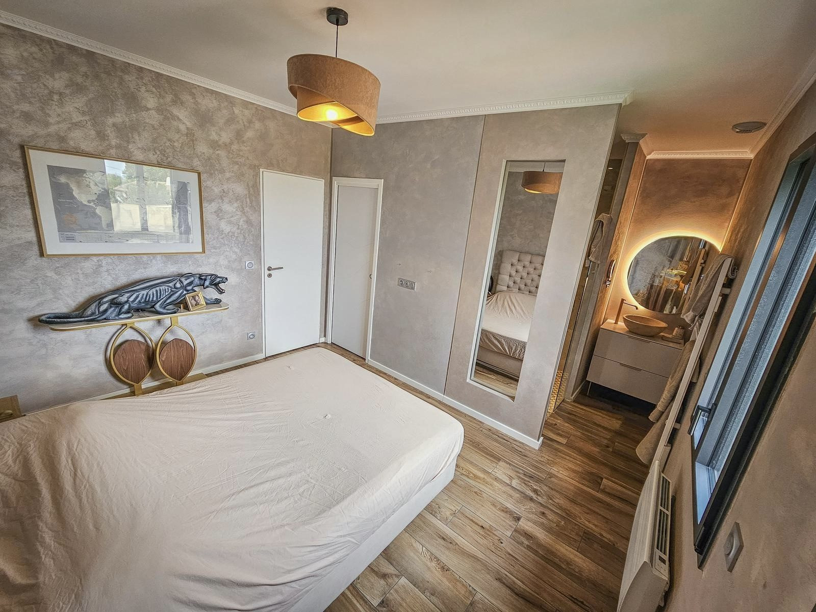 La partie nuit se compose de trois chambres, dont une superbe suite parentale de 20 m² avec dressing et salle d'eau privative. Deux chambres de 11 m² complètent l'ensemble, dont l'une dispose également de sa propre salle de bains.