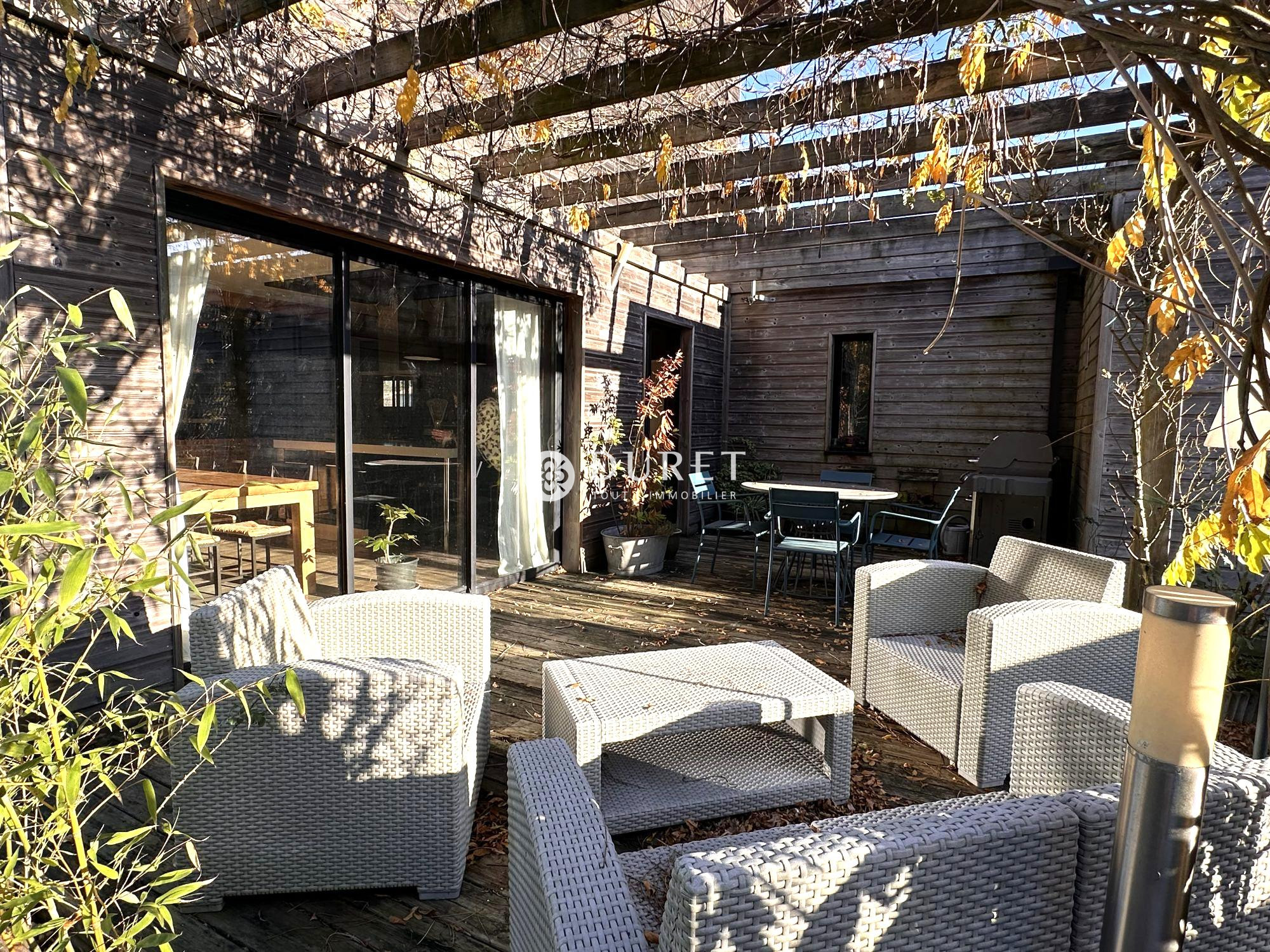 Dès l'entrée, le charme opère : une pièce de vie spectaculaire, lumineuse du matin au soir, sublimée par un parquet massif, un poêle à bois et une ambiance résolument cosy. La cuisine ouverte et la salle à manger forment un espace convivial de 52 m², idéal pour recevoir. Les larges ouvertures s'ouvrent sur une terrasse intime, protégée par une pergola ornée de glycine? un véritable cocon extérieur, sans vis-à-vis.