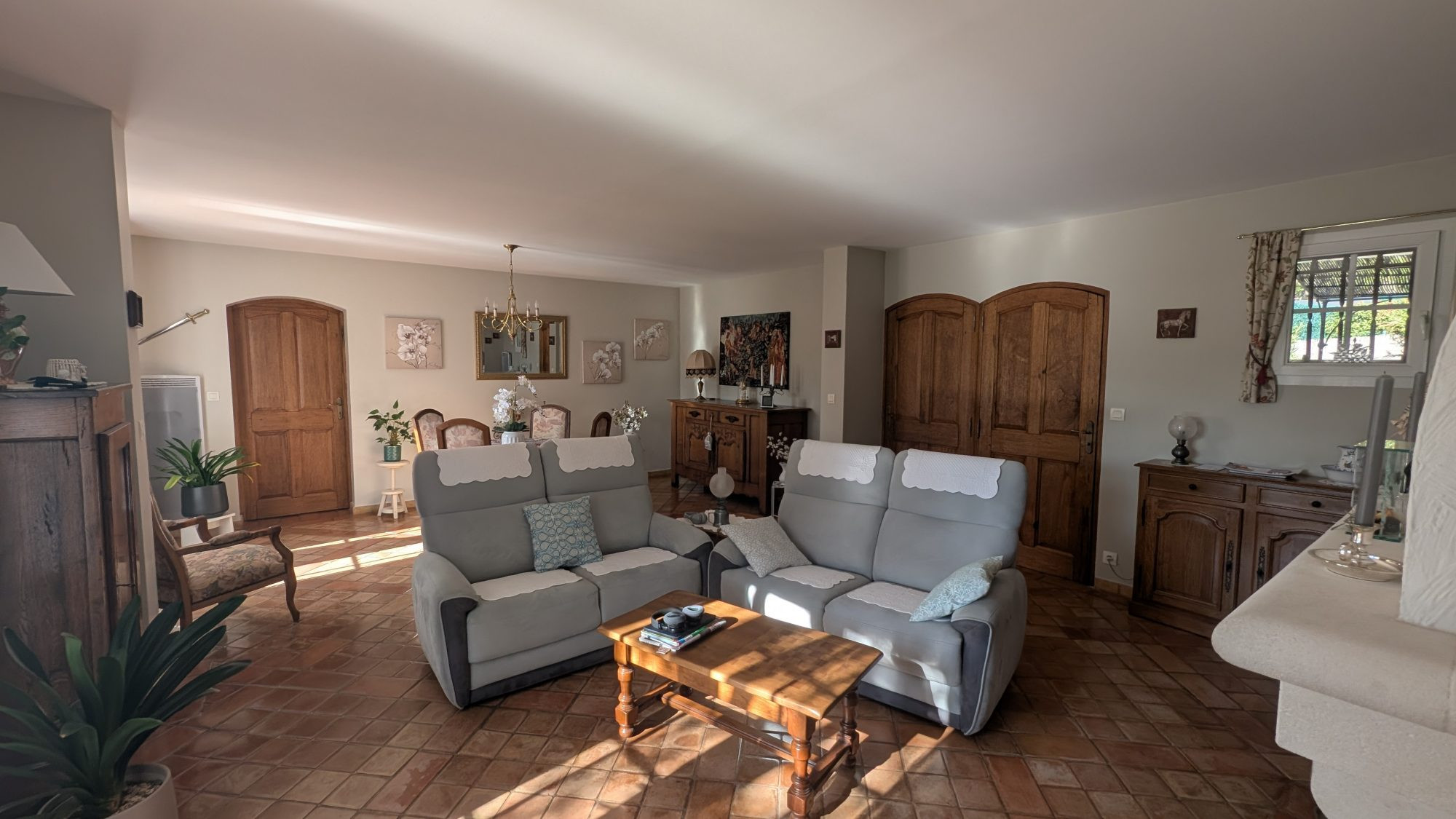 Cette villa, en excellent état, bénéficie d'un chauffage au bois via un insert récent et une climatisation réversible dans le séjour.