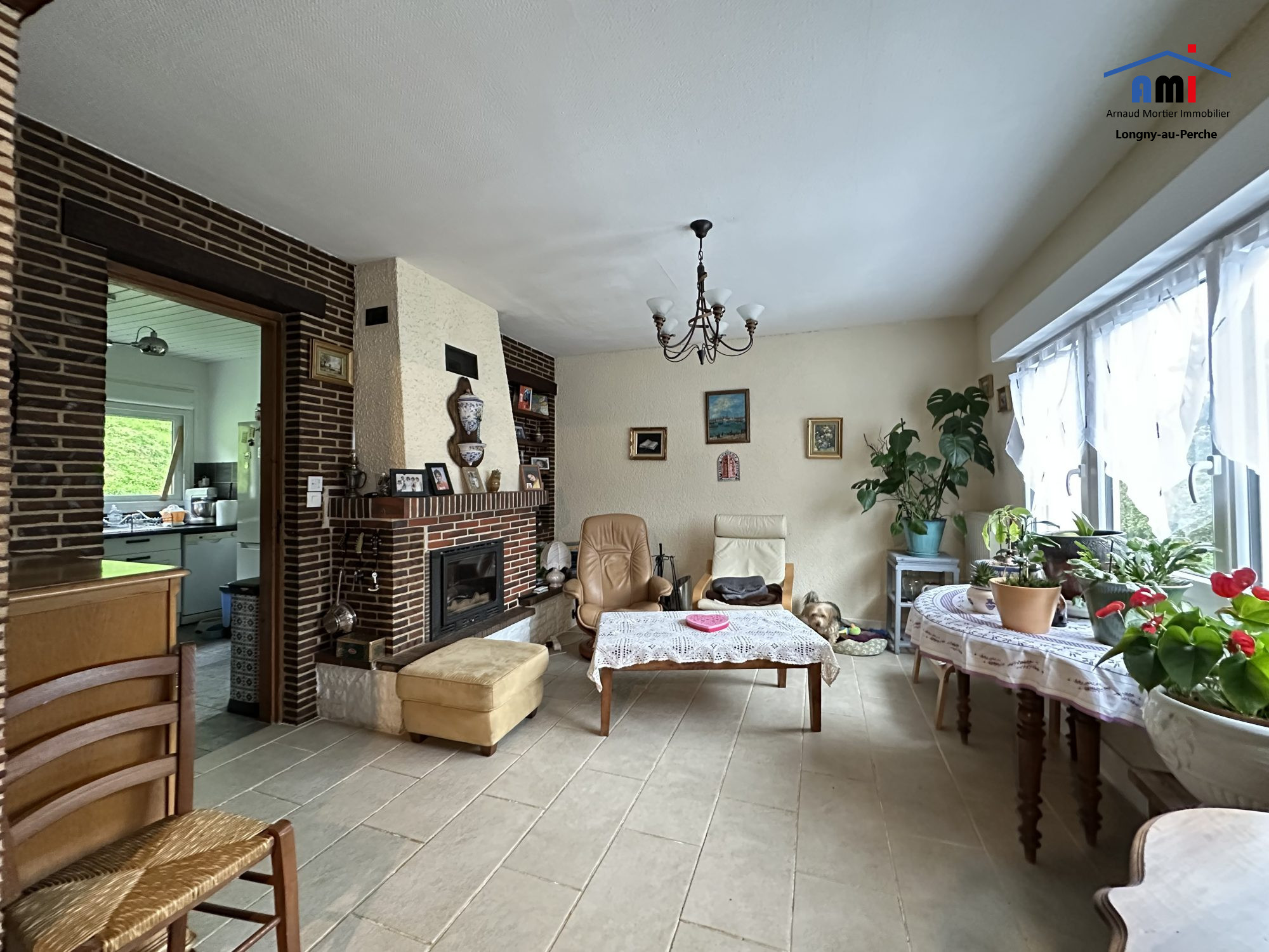 A Longny-Au-Perche, en sortie de village, l'agence AMI vous propose à la vente un pavillon rénové sur sous sol de 71m² habitables sur environ 1400m² de terrain (en pente). La maison offre de plain-pied : une entrée, un WC, une cuisine aménagée et équipée (10m²), un double séjour avec cheminée-insert (25m²), à la suite, un couloir dessert 2 chambres (10.5m² et 11.4m²) avec placards, et une salle d'eau (5m²). Chauffage par pompe à chaleur air/eau de 2021, fenêtres en double vitrage PVC, volets roulants électriques sur une partie de la maison. Montant estimé des dépenses annuelles d'énergie pour un usage standard : entre ? ? et ? par an. Prix moyen des énergies indexés sur l'année 2021 (abonnements compris). Accès au sous-sol par la maison. Sous sol composé d'une partie garage avec porte motorisée, un atelier, une partie chaufferie, une pièce pouvant faire office de bureau, un coin buanderie, et un WC avec lave-mains. Bon état général. Couverture en tuiles mécaniques. A l'extérieur, une partie plate avec terrasse et une partie de terrain en pente. IDÉAL 1er achat ou LOCATIF.