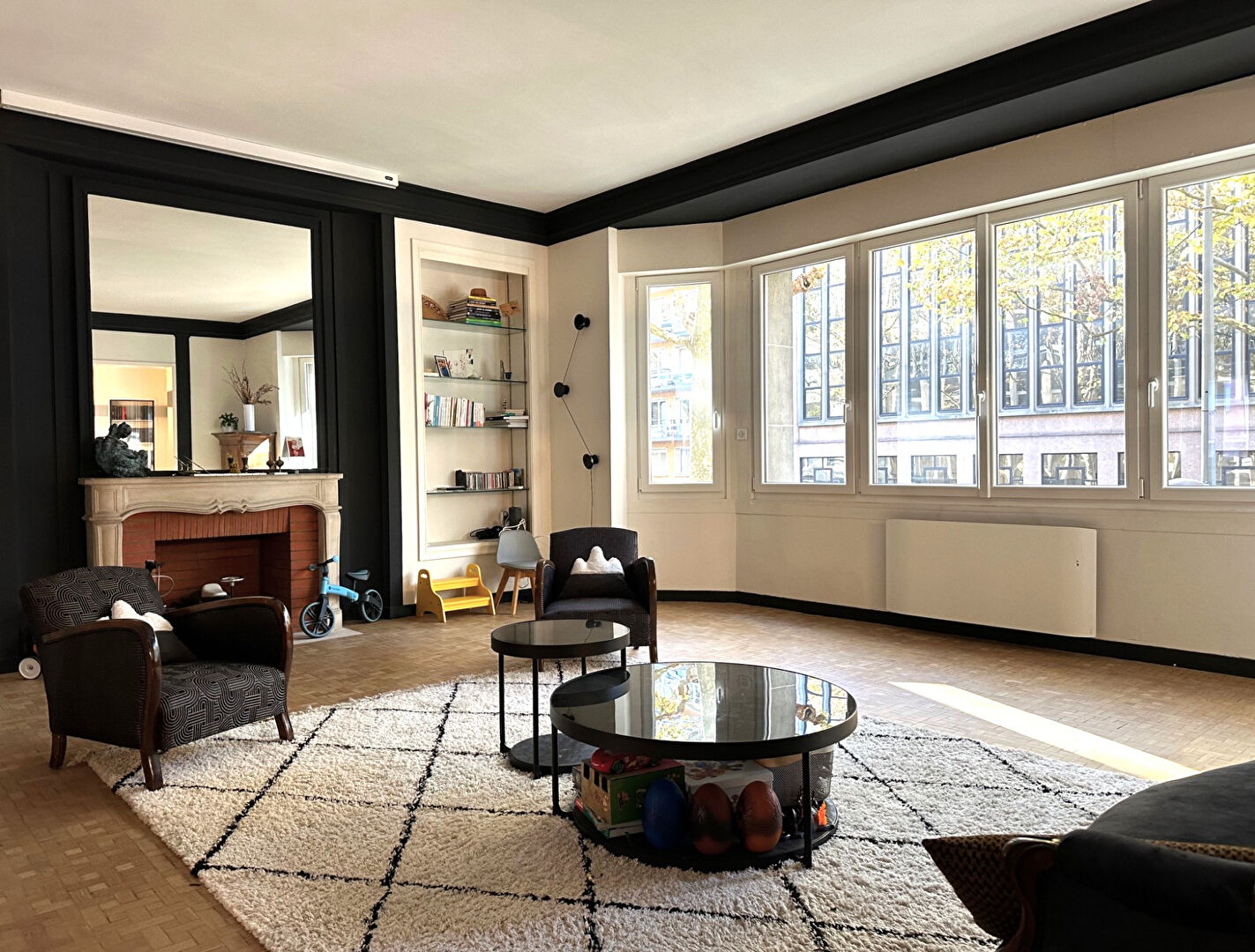 Coup de coeur pour ce magnifique appartement bourgeois de 206 m² alliant le charme de l' époque à une belle rénovation déployant : une belle entrée spacieuse où l' espace bureau prend sens et distribuant un double salon séjour parqueté avec cfdb, une belle cuisine contemporaine équipée avec son espace repas, une buanderie, 4 chambres dont 3 en suite avec chacune une salle de bains moderne équipée, de nombreux rangements,