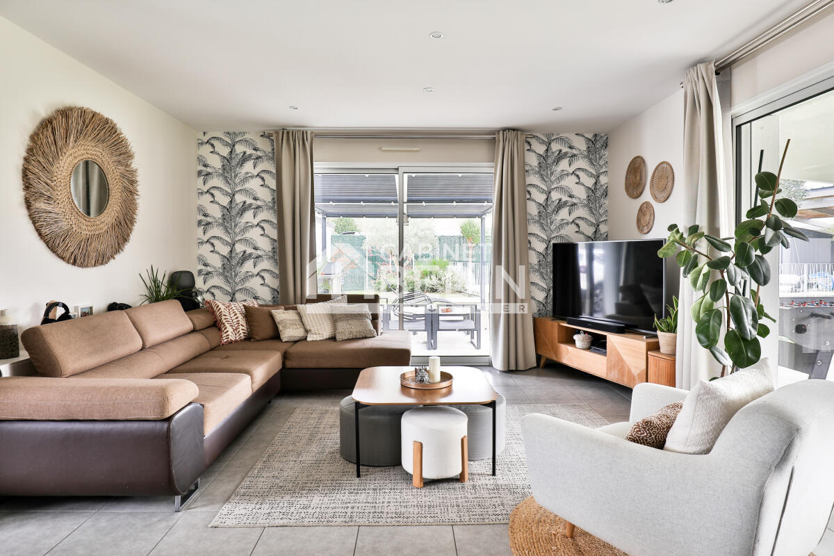 À l?extérieur, le jardin sans vis-à-vis, véritable havre de paix, est agrémenté de deux terrasses couvertes avec pergola bioclimatique exposées plein sud et d?une piscine sécurisée entourée de sa terrasse. L?ensemble offre un cadre idéal pour profiter de moments en famille dans la tranquillité et la verdure.