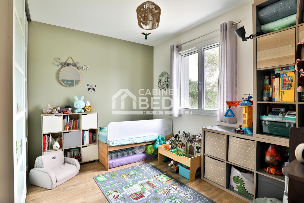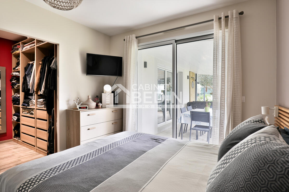 De plain-pied et encore sous garantie décennale, elle développe environ 107?m² habitables. Dès l?entrée, un espace dressing s?ouvre sur une pièce de vie lumineuse de 50?m². La cuisine Schmidt, aménagée et entièrement équipée, se fond harmonieusement dans le salon, créant un espace convivial, moderne et chaleureux.