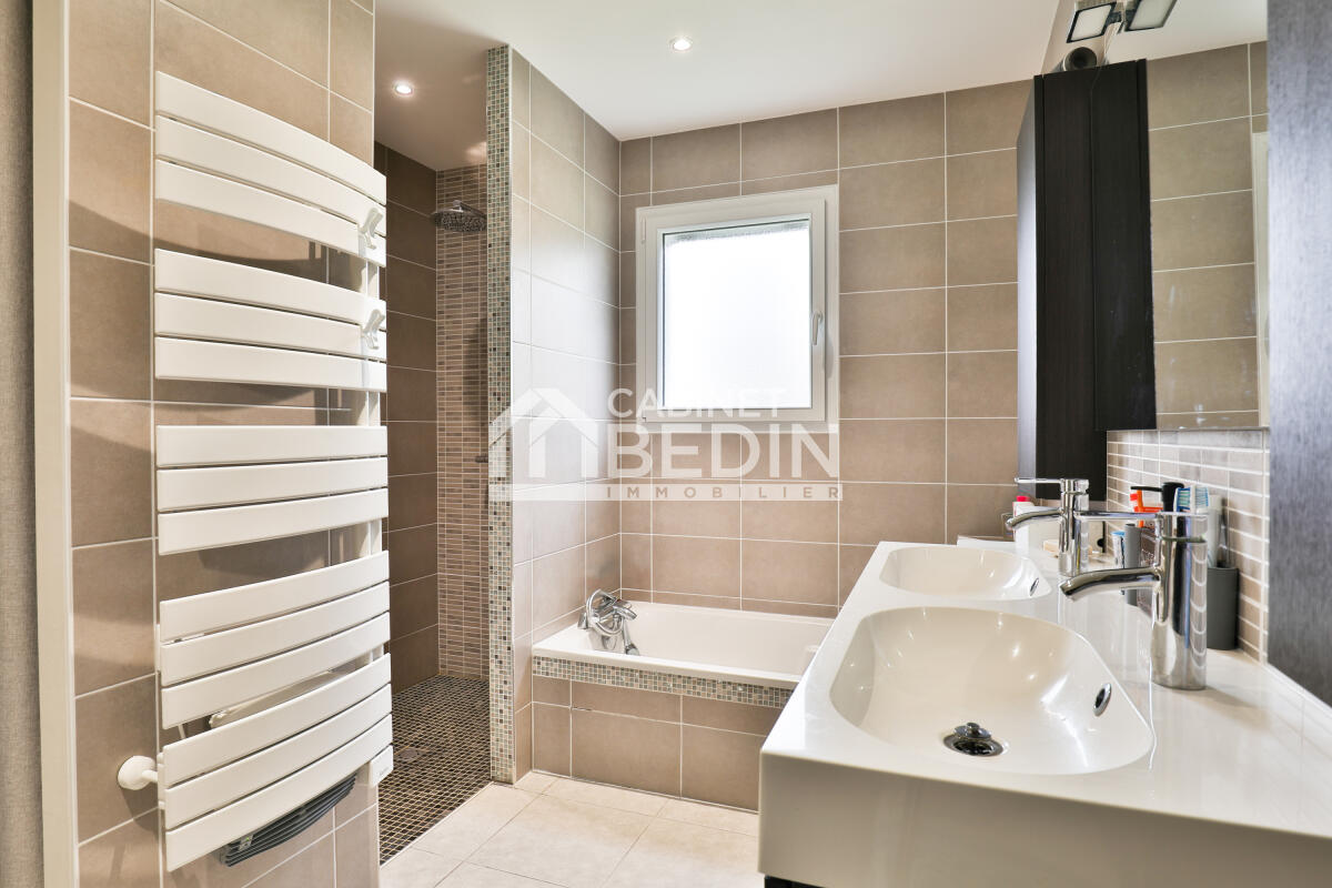 La partie nuit comprend deux chambres enfants et une suite parentale avec dressing sur mesure. La salle de bains allie élégance et confort avec sa douche et sa baignoire.