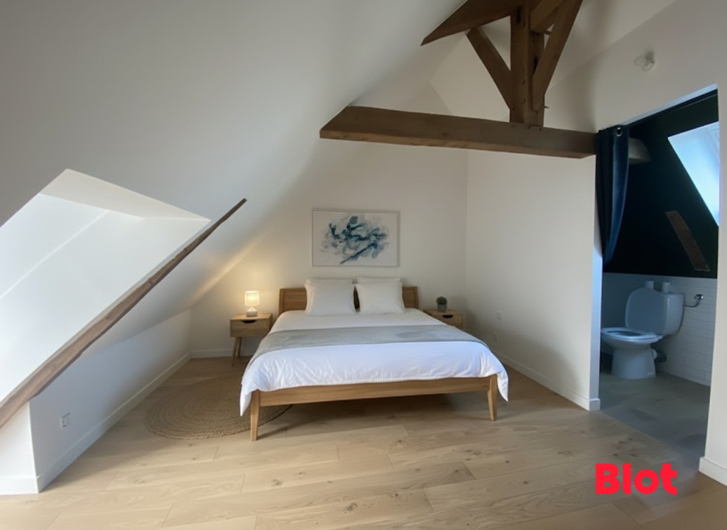 Au 2e étage : une deuxième chambre confortable et une salle de bain.