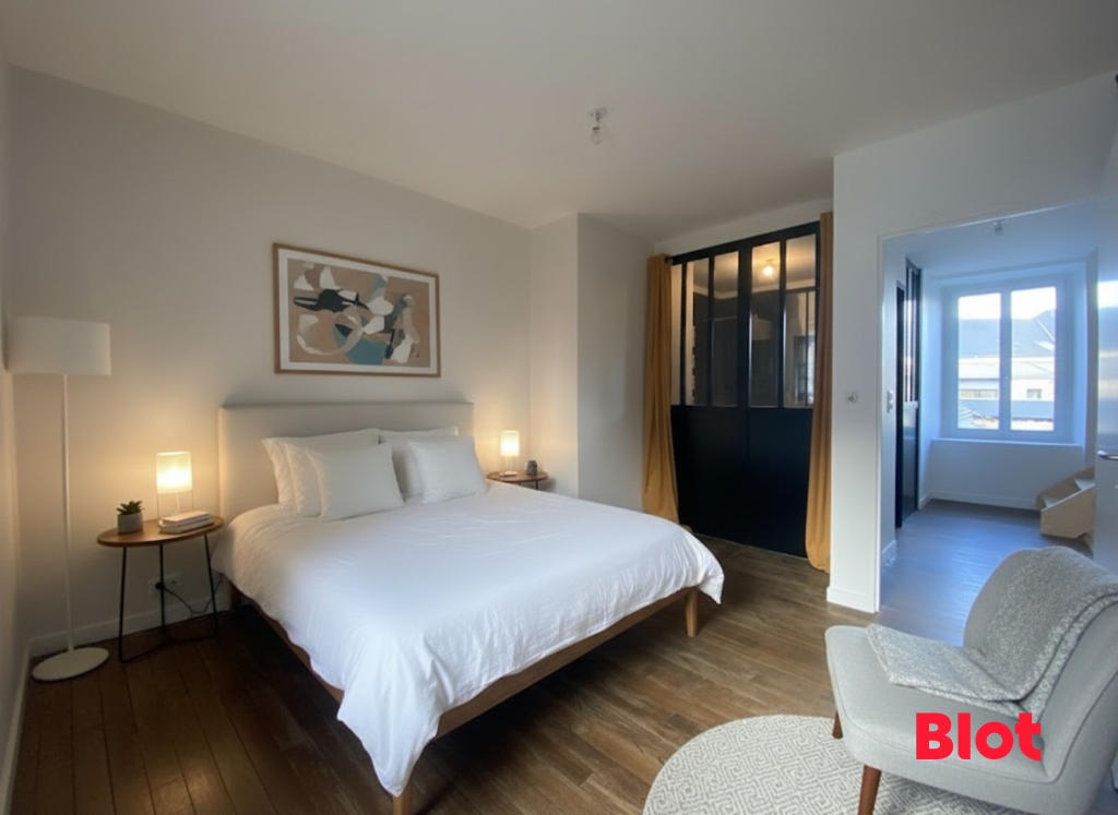 Au 1er étage : un palier dessert une chambre avec placard, une salle d'eau moderne et un deuxième WC.