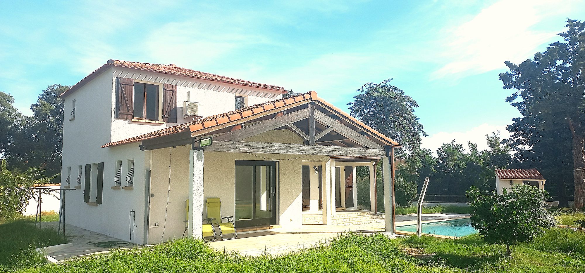 En extérieur les espaces sont très appréciables, notamment la grande pergola devant la piscine pour les heures chaudes de l'été, face aux Albères, un bien immobilier à s'y intéresser !