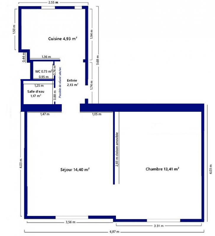 Il offre une entrée, un séjour lumineux, une chambre, une cuisine indépendante, une salle d'eau et des toilettes séparées.