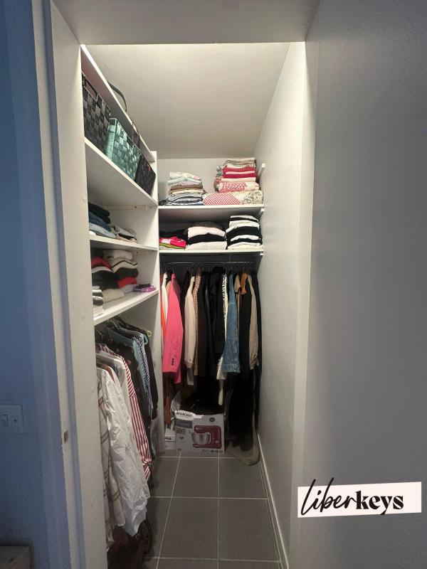 Un petit dressing indépendant complète le tout -- parfait pour un coin rangement, un cellier ou même un mini bureau selon vos besoins.