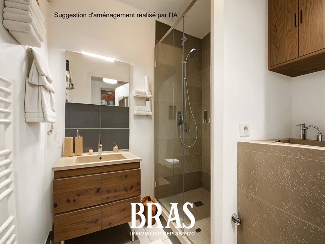 Une salle d'eau contemporaine et des toilettes séparés complètent ce bien.