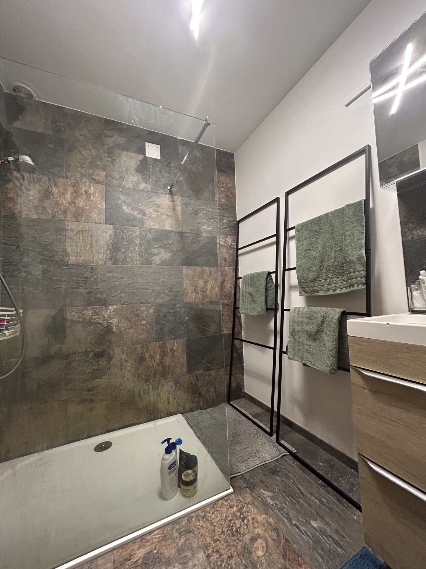 Vous profiterez de trois belles chambres 12, 13 et 15m2; un beau séjour, une cuisine équipée de qualité, une belle salle d'eau avec douche à l'italienne et un wc séparé.