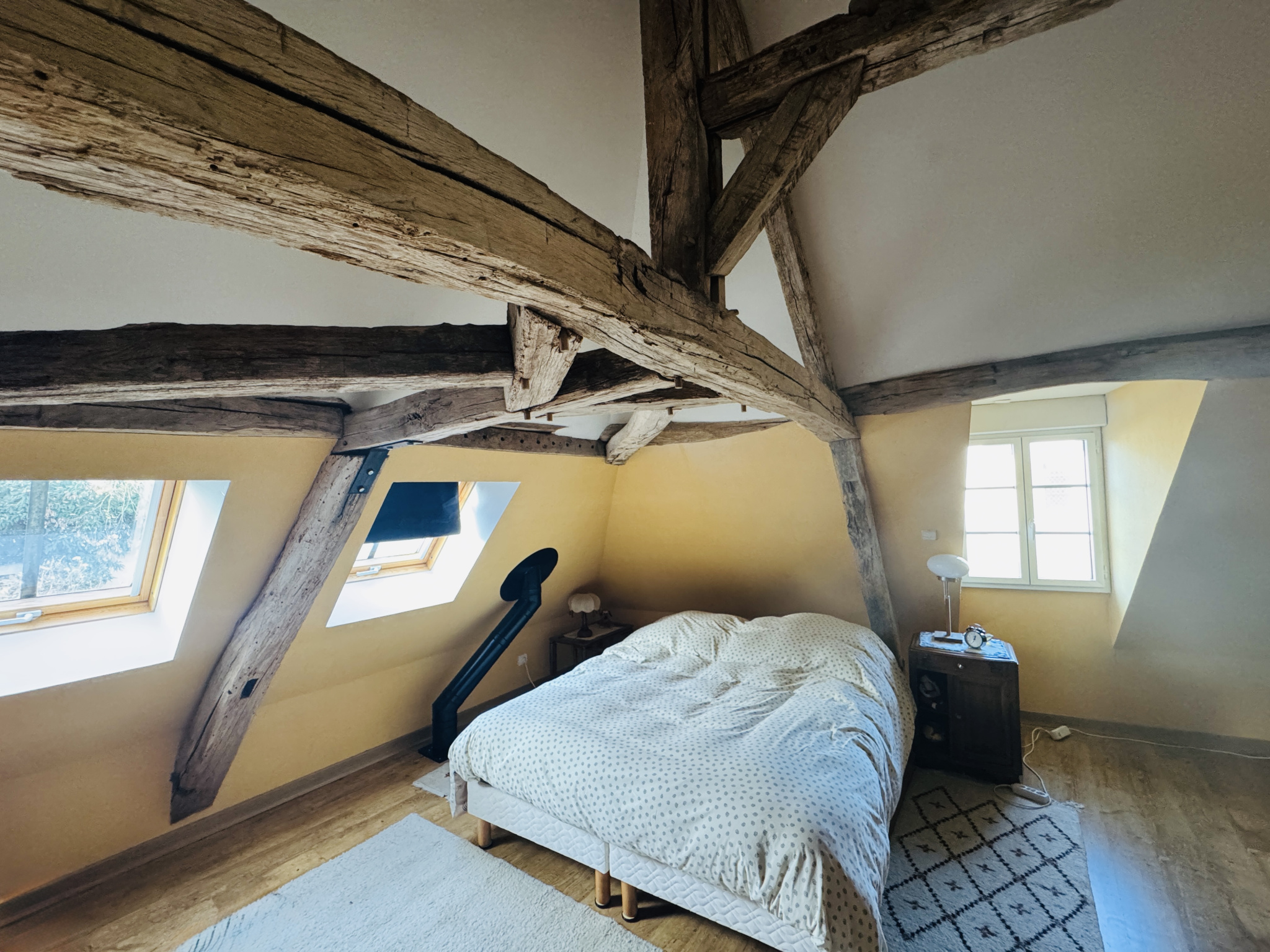 A l'entrée de la propriété, totalement indépendante de la maison principale et du jardin, l'ancienne grange d'une surface de 58 m2 est totalement réhabilitée; composeé d'une belle pièce de vie avec cuisine , salle de douche et d'une grande chambre pleine de charme à l'étage. Elle sera idéale pour acceuillir la famille , les amis, une profession libérale ou pour un revenu locatif.