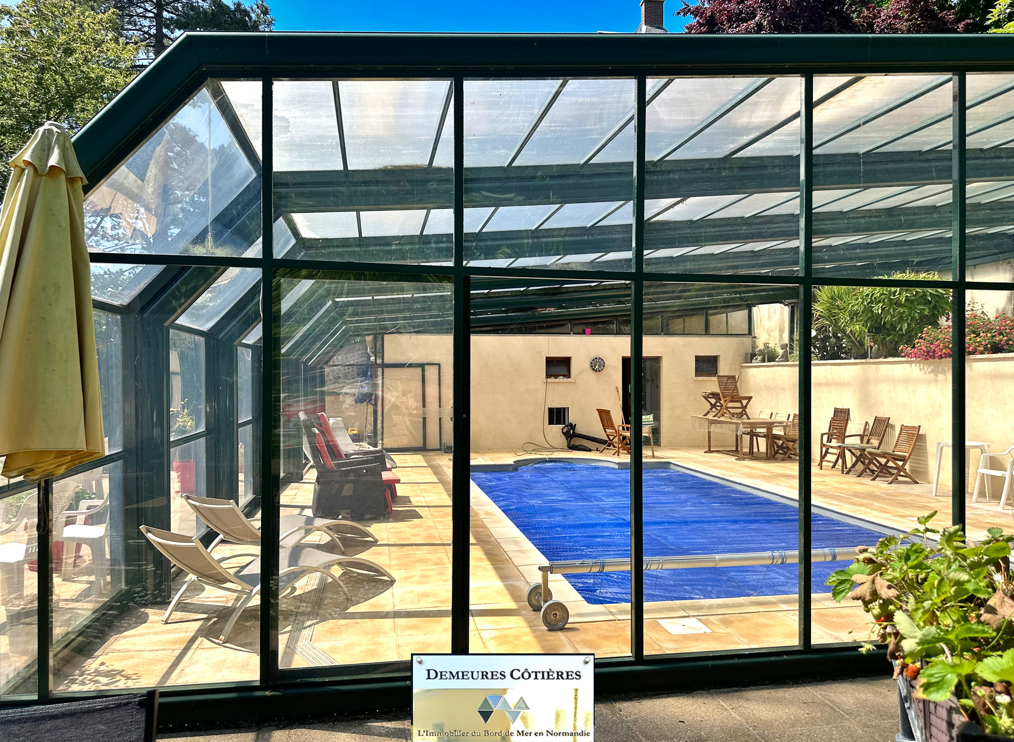 Un espace piscine couverte et pool house avec douche et cabinet de toilette a été conçu par les propriétaires de la maison en 2005-2006. La piscine bénéficie grace à sa couverture d'une excellente température sans nécessiter d'importantes dépenses énergétiques. Un réel atout. Systeme de filtrage brome et Bio-UV. Liner 2024