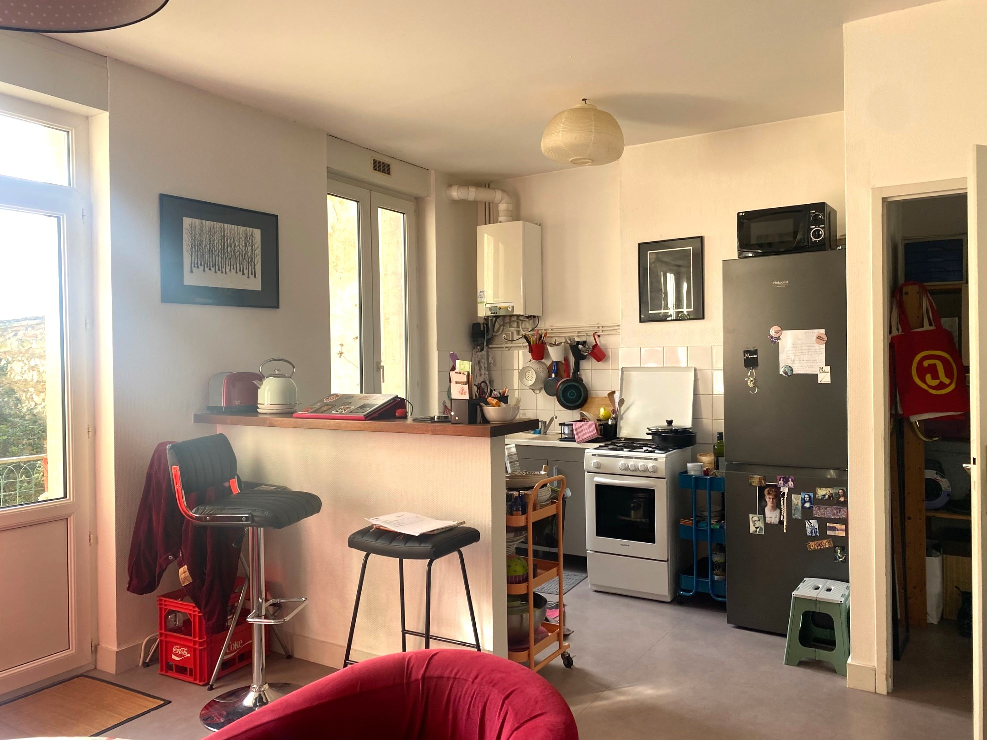 - Au 1er étage : Un appartement T3 de 62 m2 comprenant une pièce principale avec coin cuisine, 2 chambres, salle de bain, wc, balcon et grenier.