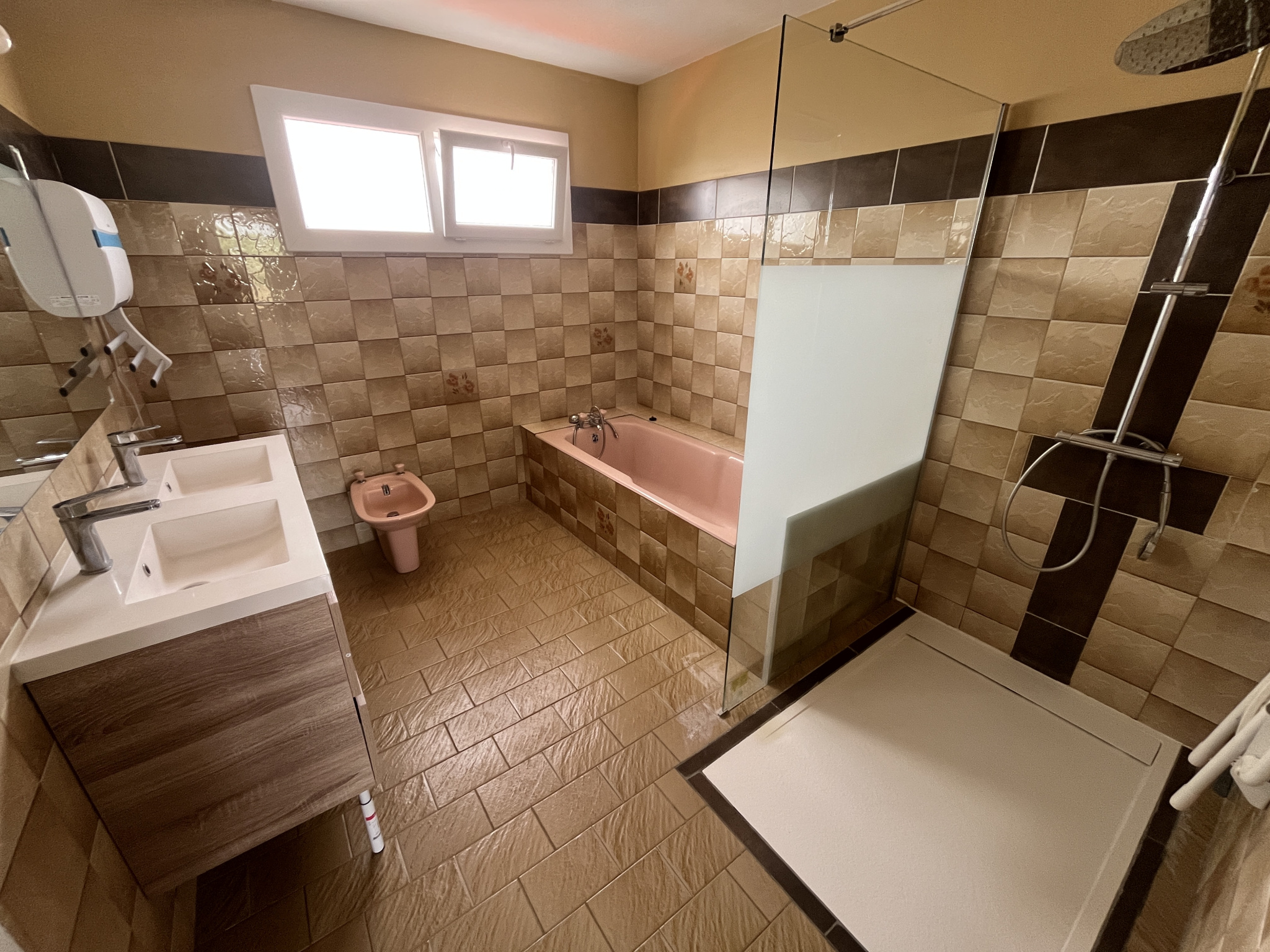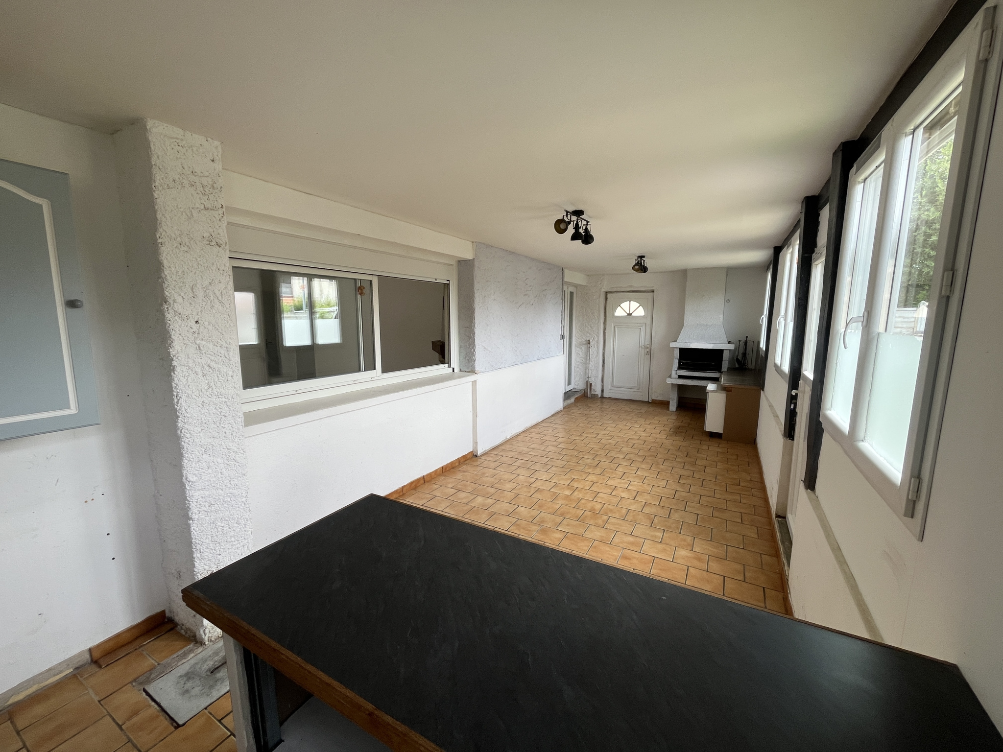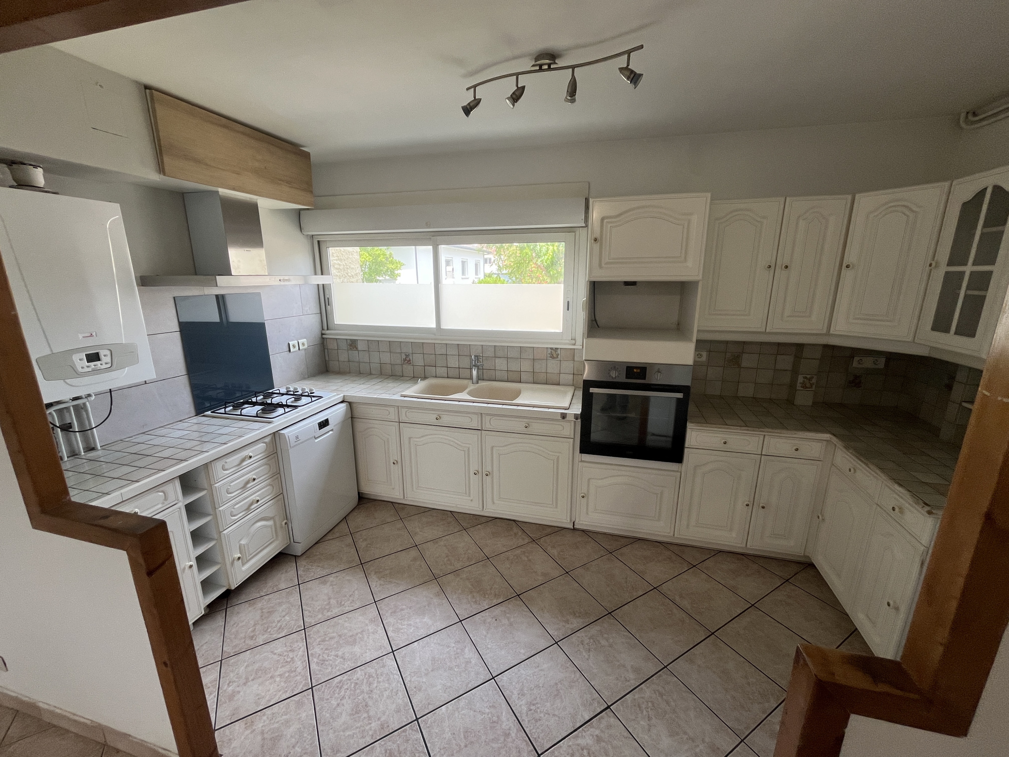 Maison de type 6 située dans un quartier calme et agréable à deux pas des commodités. Elle comprend en rez-de-chaussée une entrée, salon/séjour ouvert sur cuisine équipée, un cellier, une véranda avec coin cuisine, WC et garage. A l'étage un palier desservant 4 chambres, une salle de bains avec douche et baignoire, un WC et un bureau.