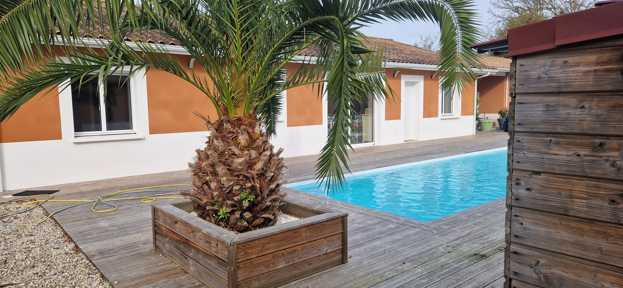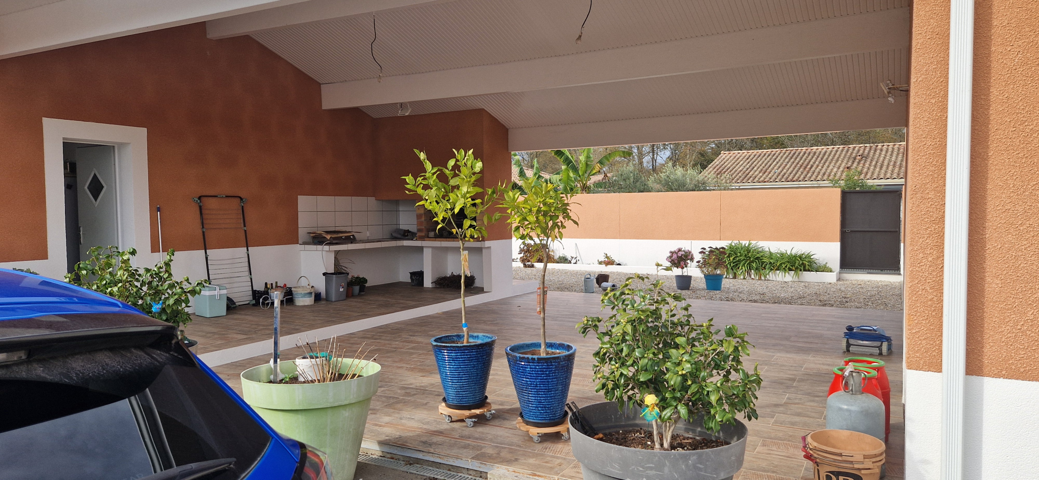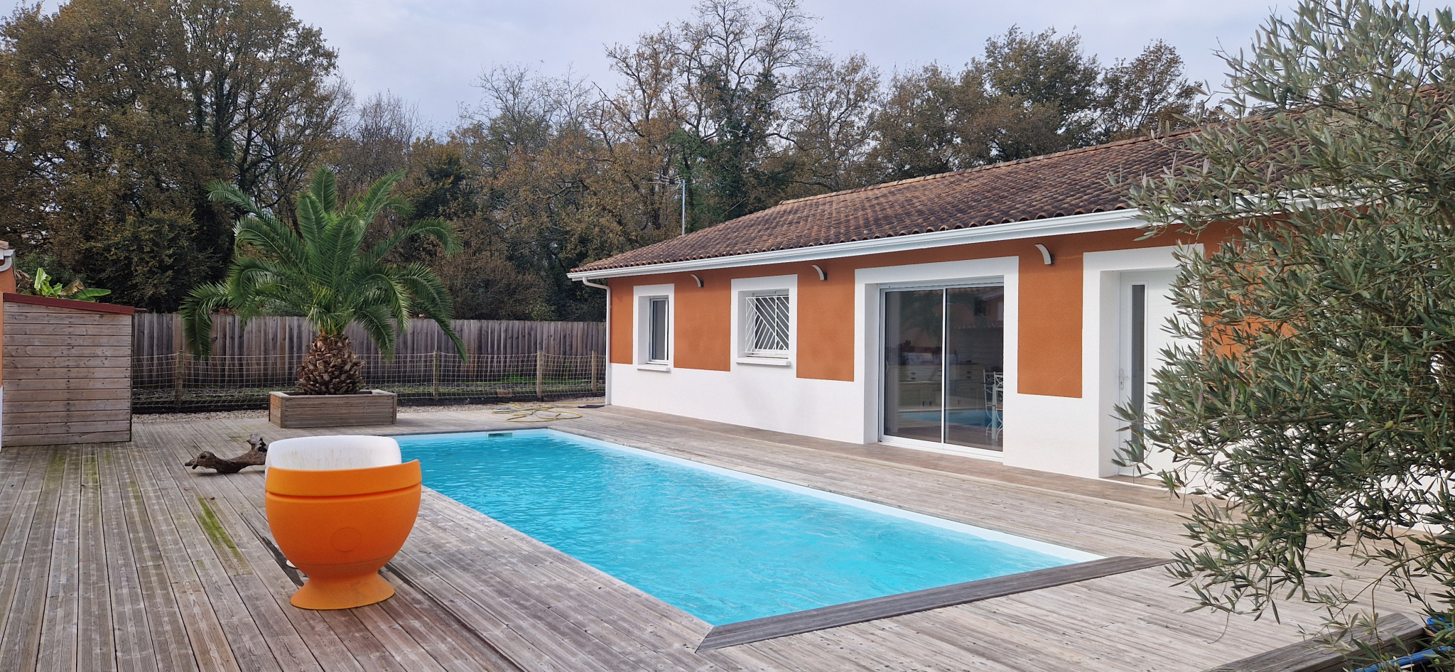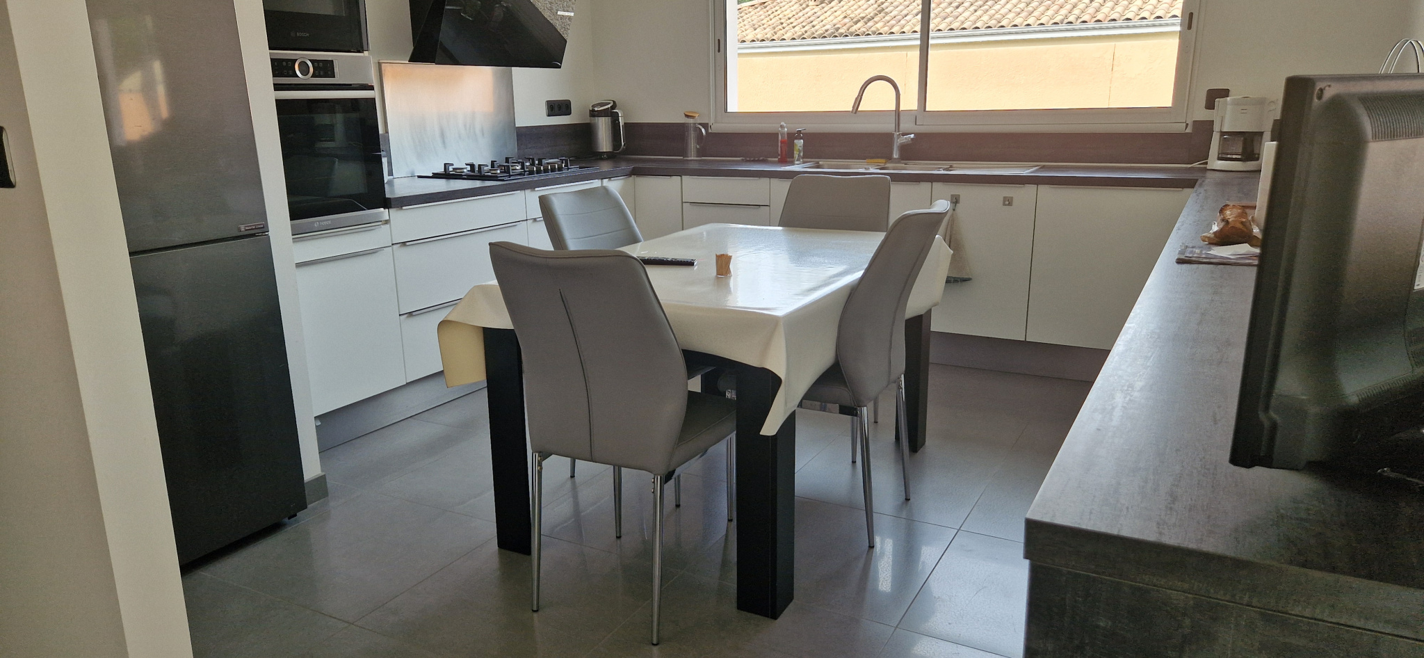 belle maison de plain-pied 145 m2 comprenant, un séjour avec cuisine équipée, cellier, dégagement, trois chambres avec placards, salle de bains avec baignoire et douche à l'italienne, WC, terrasse couverte carrelée avec BBQ 70 m2, garage double attenant 70 m2 plus rochelle 38 m2 et cave isolée, piscine avec terrasse bois autour, jardin potager, parking et jardin clos.