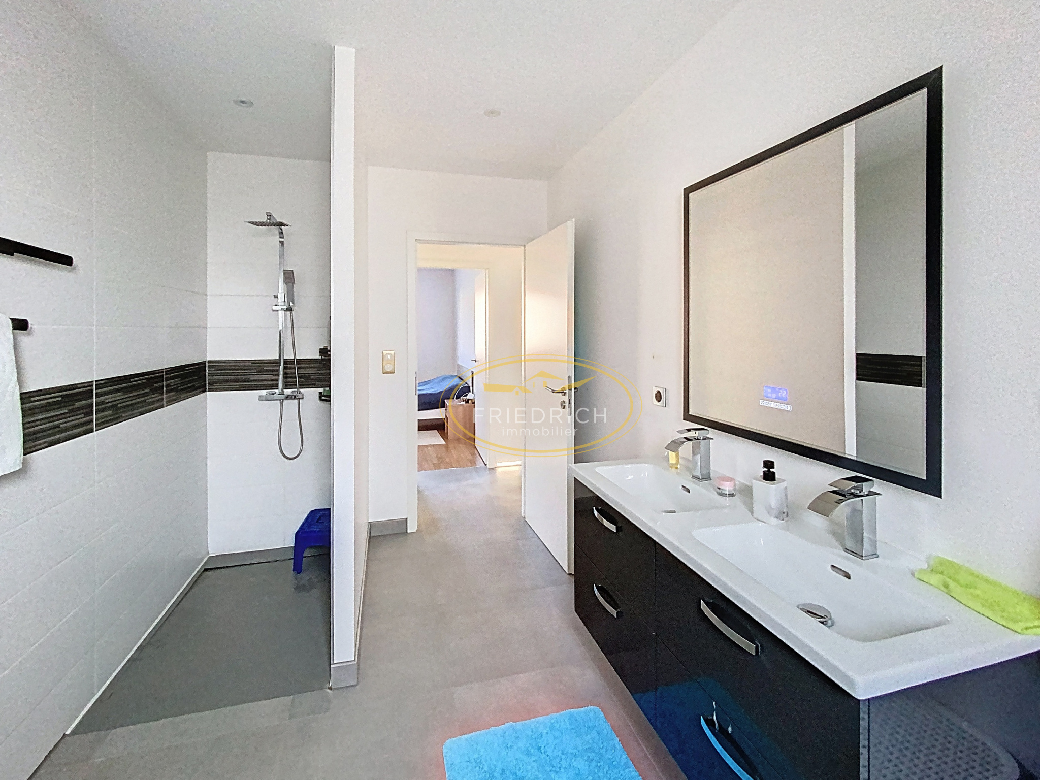 - Salle d'eau / WC (9,20m2), sol carrelage. Douche italienne, meuble double vasques, radiateur sèche-serviette et branchement machine à laver ;