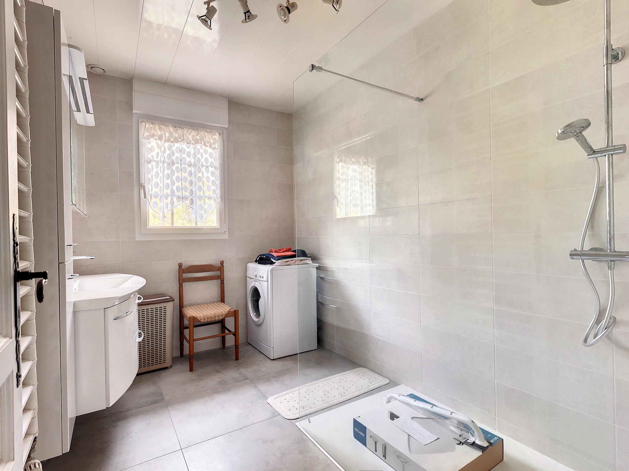 Détail de l'annonce ci-dessous : De Plain-pied : - Sas d'entrée (8 m2) : sol carrelage ; - Cuisine équipée (15 m2) : sol carrelage, éléments hauts et bas, réfrigérateur, plaque de cuisson 4 gaz, lave-vaisselle, four, hotte, évier 2 bacs, porte-fenetre accès terrasse ; - Séjour (37 m2) : sol carrelage, insert bois, porte fenetre accès terrasse ; - Salle d'eau (6,80 m2) : sol carrelage, douche à l'italienne, vasque sur meuble ; - Dégagement (8,50 m2) : sol carrelage, placard de rangement ; - WC (1,80 m2) : sol carrelage, lave mains ; - Chambre 1 (9,80 m2) : sol parquet ; - Chambre 2 (9,80 m2) : sol parquet ; - Chambre 3 (14 m2) : sol parquet ; - Grenier sur l'ensemble (110 m2) : sol dalle béton, entièrement aménageable. Au sous-sol : - Pièce (27 m2) : sol carrelage, insert bois ; - Garage (40 m2) : sol carrelage, porte sectionnelle motorisée ; - Cellier - Chaufferie (20 m2) : sol carrelage, pompe à chaleur, chaudière fioul, tableau éléctrique ; - Cave (20 m2) : sol gravillons, cuve à fioul ; - Atelier (20 m2) : sol carrelage ; - Dégagement (10 m2) : sol carrelage ; - WC (1 m2) : sol carrelage ; Taxe foncière : 1271EUR/an (2025) Terrain attenant en nature de terrasse et jardin tout autour Les menuiseries sont en PVC double vitrage, moustiquaires et volets roulants électriques. Le tout sur 4 ares et 56 centiares Le bien est chauffé par une pàc aire/eau avec production d'eau chaude, + chaudière fioul, le tout alimentant une installation de chauffage central. Un insert bois dans le séjour et dans la pièce au rez-de-chaussée. La maison est raccordée au tout à l'égout Les informations sur les risques auxquels ce bien est exposé sont disponibles sur le site Géorisques : www.georisques.gouv.fr Honoraires charge vendeur.